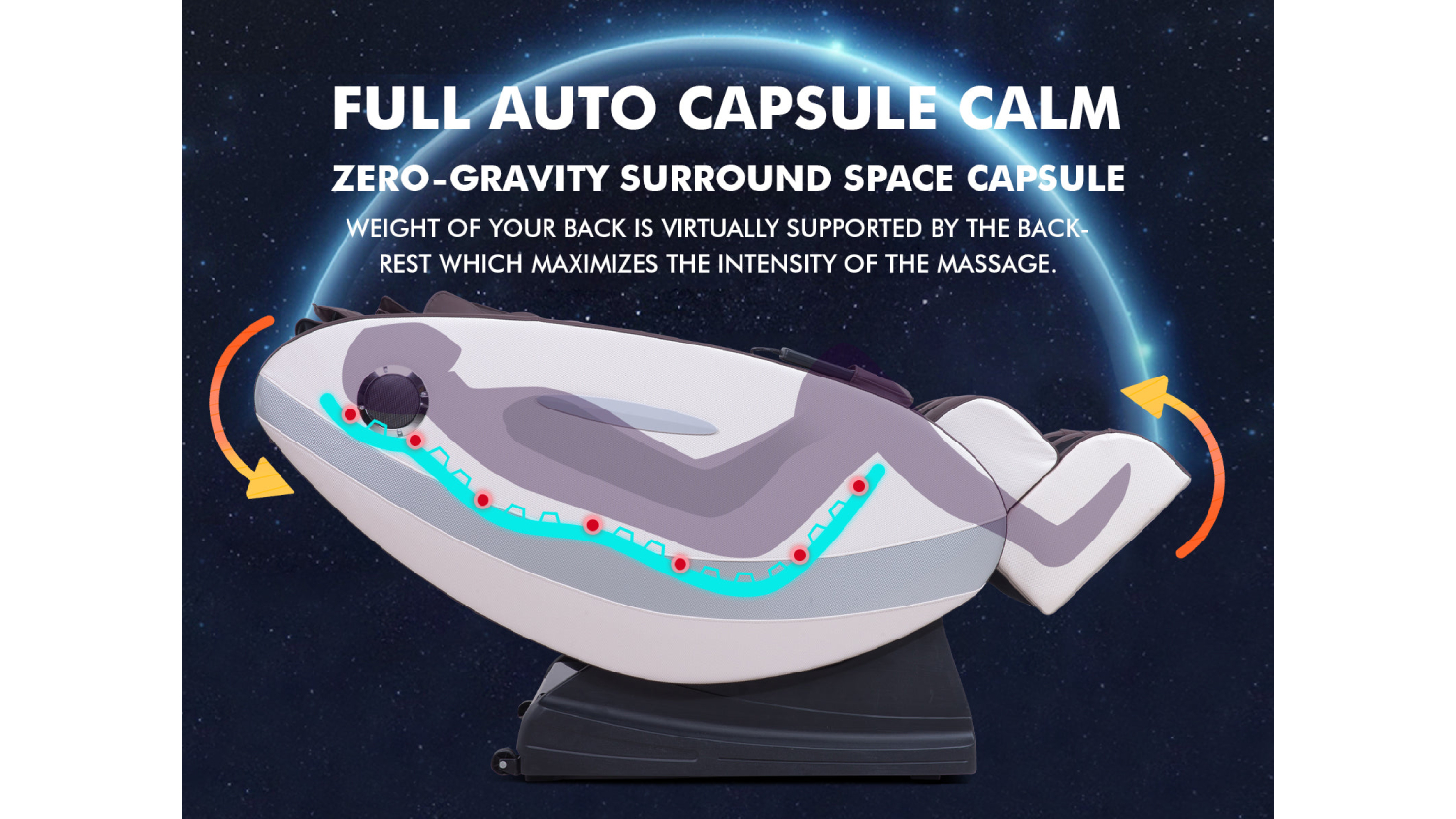 Redefine relaxation with the TSB Living Full Body Massage Chair—an iconic blend of futuristic design and intelligent massaging functions. Immerse yourself in the capsule-inspired chair and let the zero-gravity experience take you to new heights of tranquillity. It features customisable speed and intensity levels, while the heated massage function helps relieve aches and stress in the most comfortable way possible.
