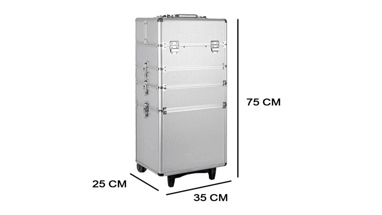 Meet the TSB Living Portable Makeup Trolley with Wheels – your ultimate travel companion for glamour on the go! Crafted with a durable aluminium frame and Grade A materials, this beauty case is a testament to strength and sophistication. More than just spacious, it also features a pull-out wheeler travel handle, a detachable top compartment, and four adjustable dividers.