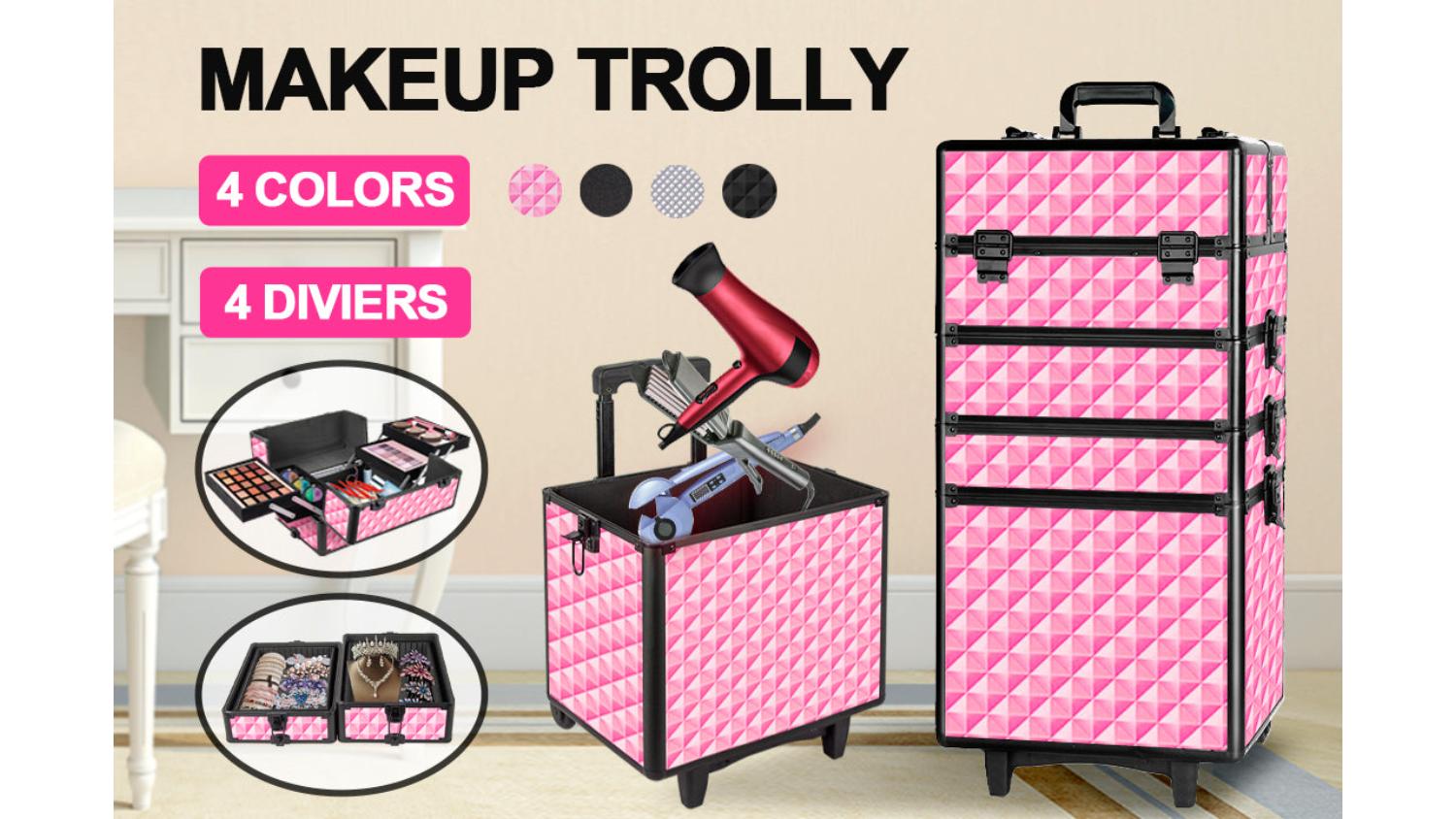 *TSB Living Portable Makeup Trolley with Wheels, Travel Handle Pink only. Other colours are sold separately.