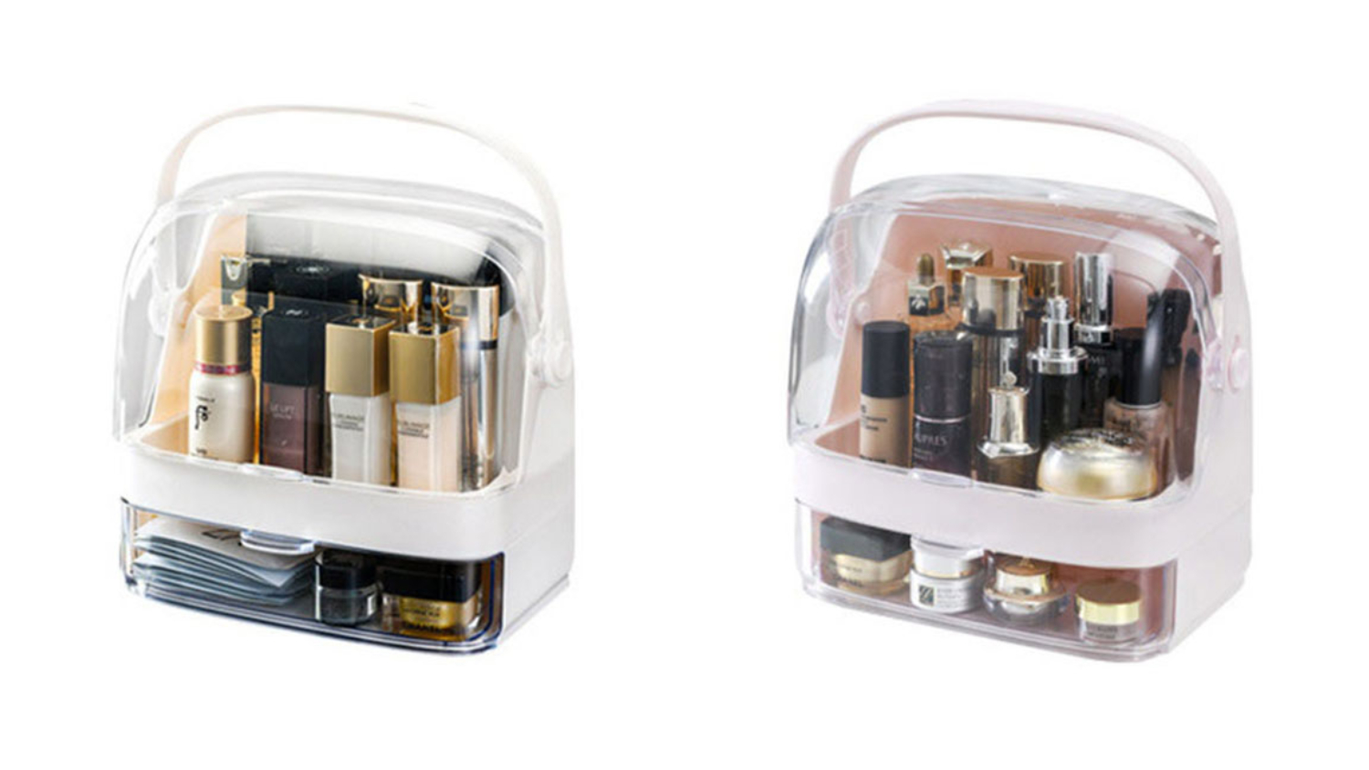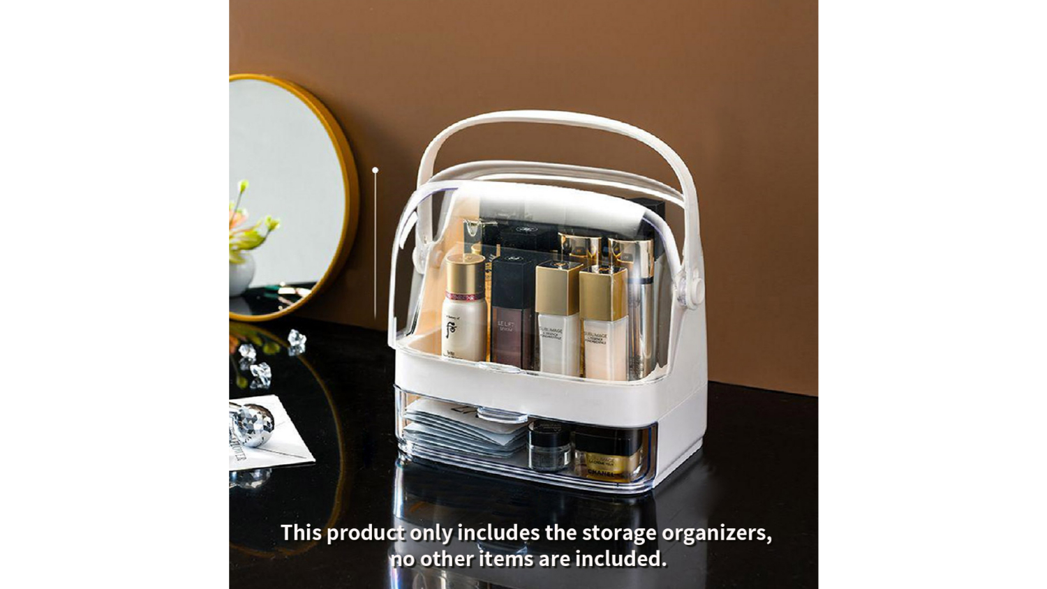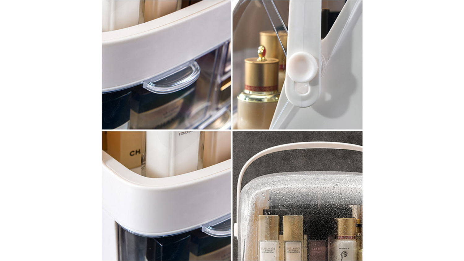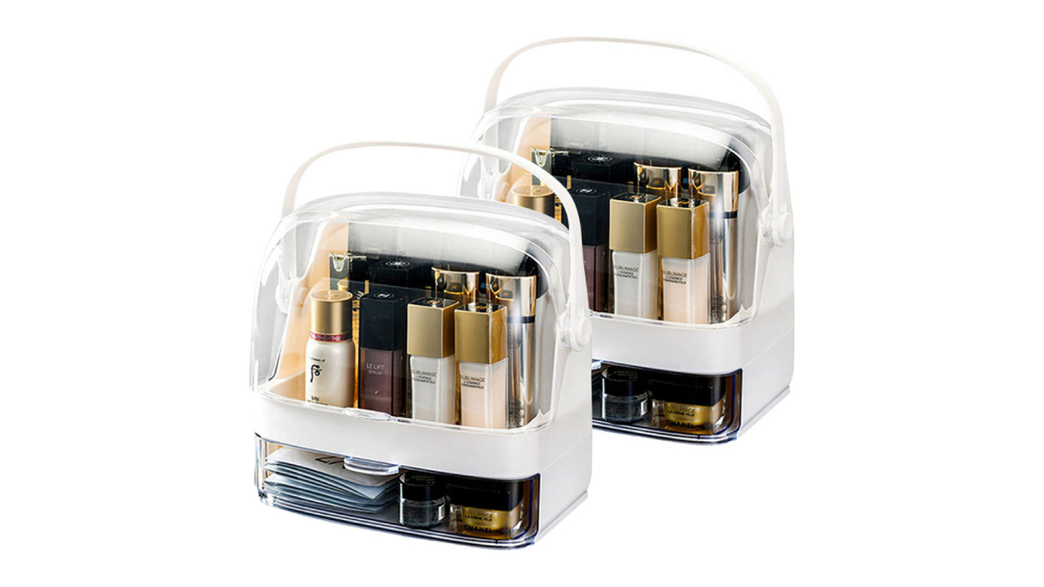 Keep your beauty essentials organised with the SOGA Dual Tier Covered Makeup Organiser Caddy 2pcs. These caddies are perfect for compact spaces, featuring crystal clear lids and sturdy ABS material. They arrange and display your cosmetics and skincare items with elegance.