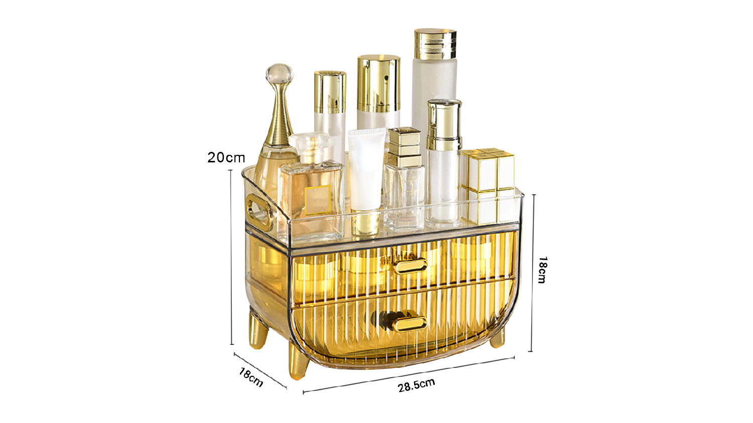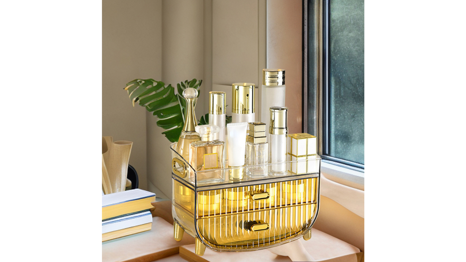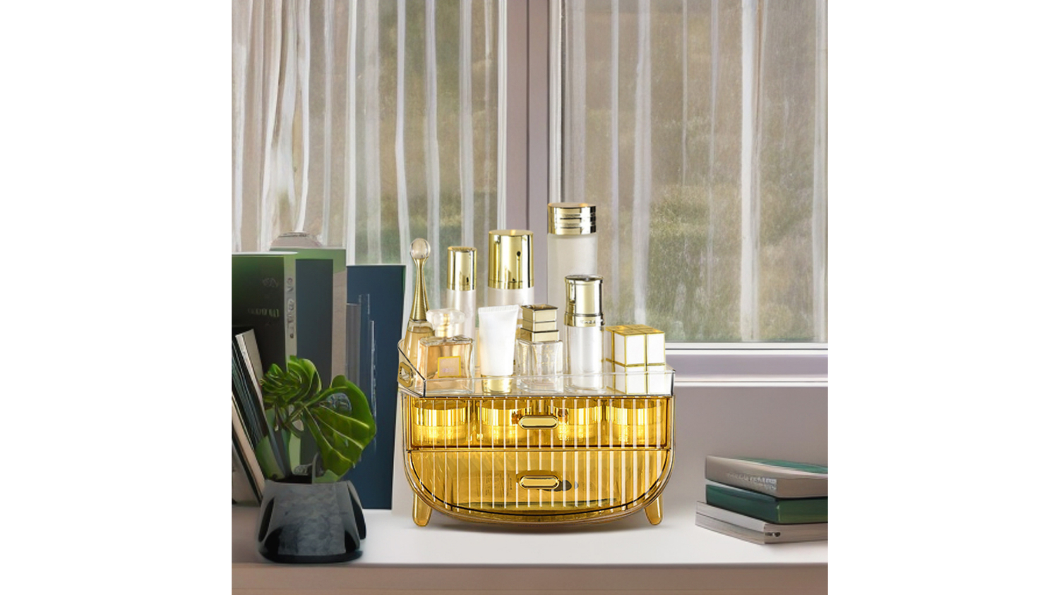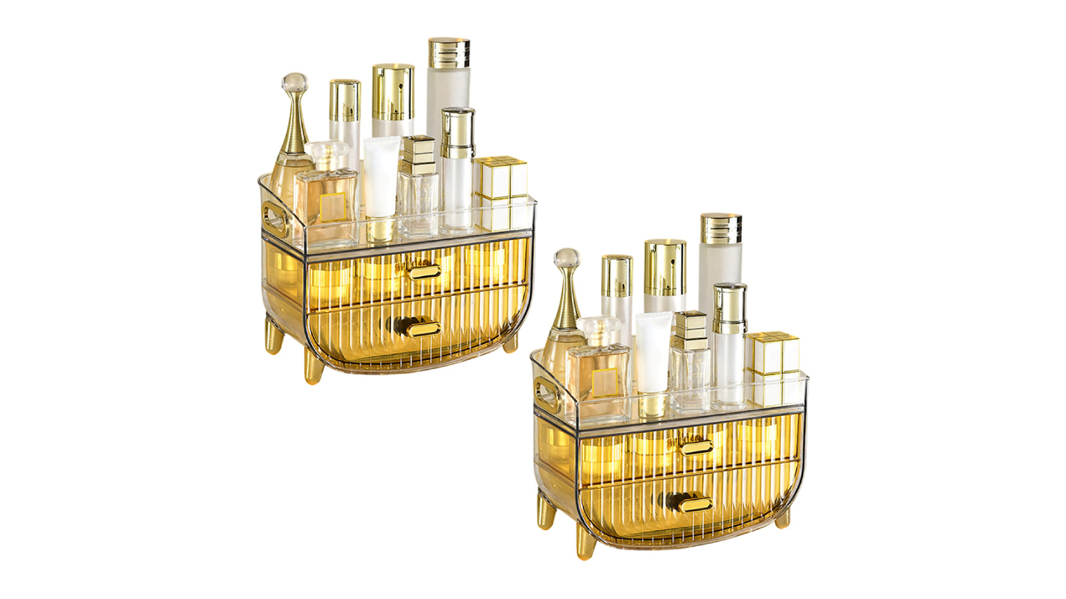 Chic, functional, and space-saving, the SOGA Dual Tier Makeup Organiser Drawer with Upper Display Shelf 2pcs neatly arranges your beauty essentials. It features a high-quality ABS material and multiple tiers to accommodate different cosmetics, makeup accessories, and skincare products. It’s a great storage solution for any home!