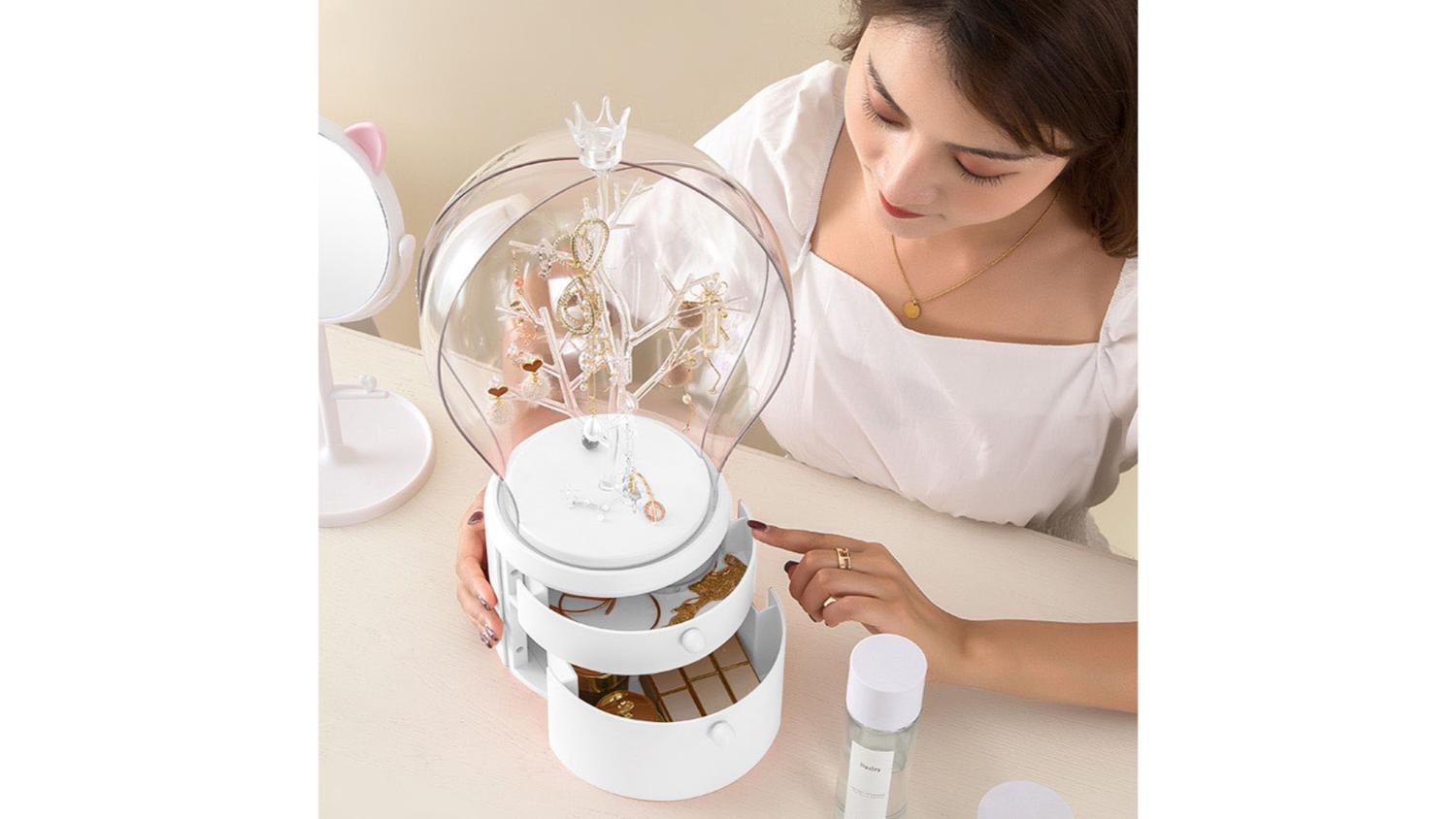 Store your accessories in style with the SOGA Fairytale Jewellery Organiser with Drawers 2pc! Each unit boasts a 360-degree rotating design with built-in LED lights, transforming your jewellery selection into a dazzling display. Crafted from durable ABS plastic, it features two spacious drawers and a transparent cover to protect your treasures from dust and water, all while letting their beauty shine through.