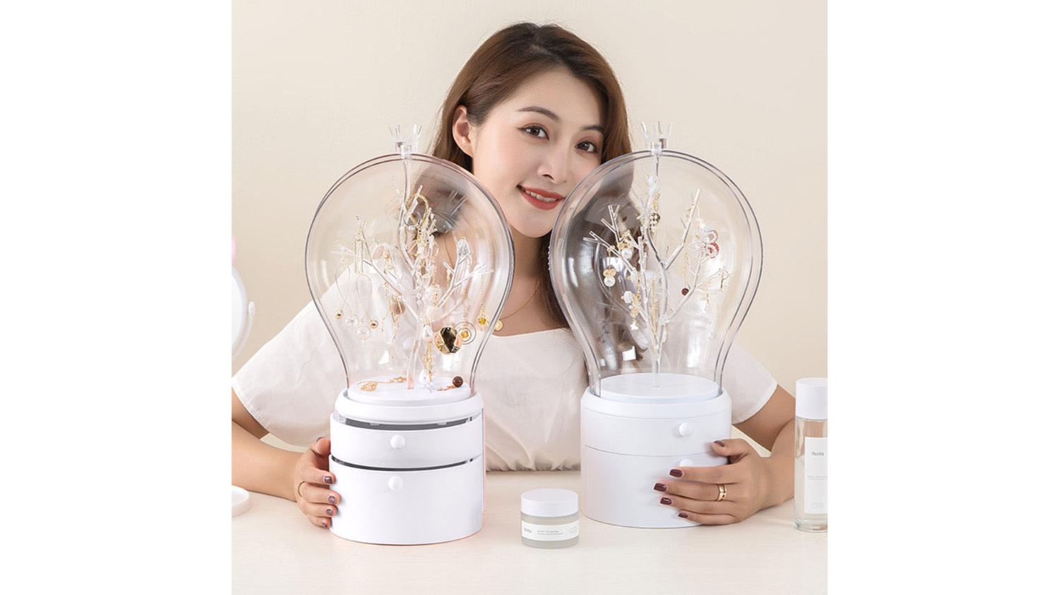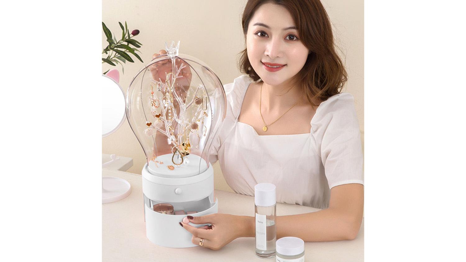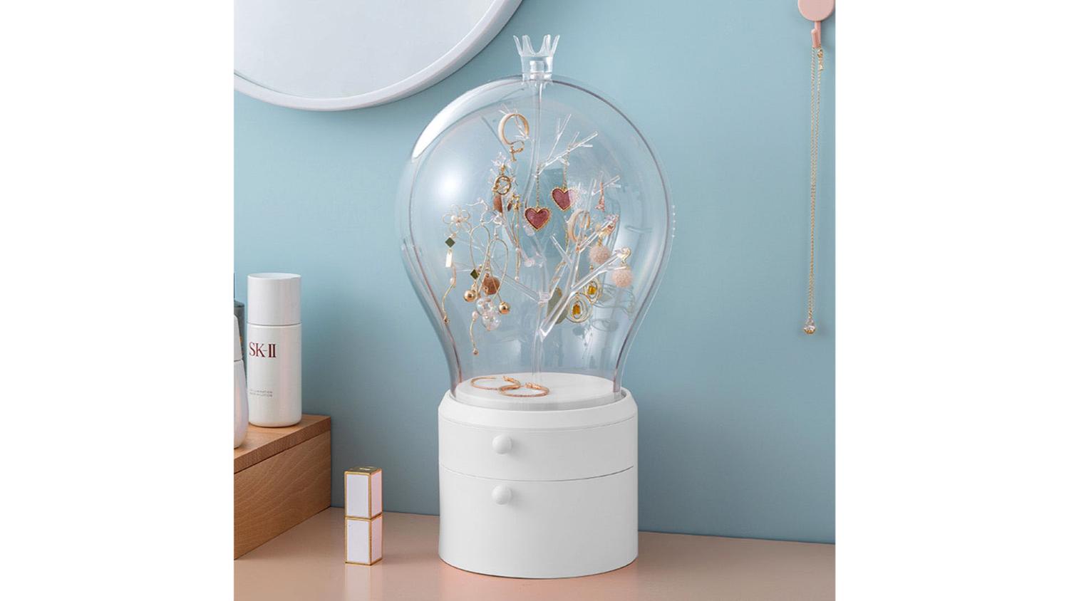 Store your accessories in style with the SOGA Fairytale Jewellery Organiser with Drawers! It boasts a 360-degree rotating design with built-in LED lights, transforming your jewellery selection into a dazzling display. Crafted from durable ABS plastic, it features two spacious drawers and a transparent cover to protect your treasures from dust and water, all while letting their beauty shine through.