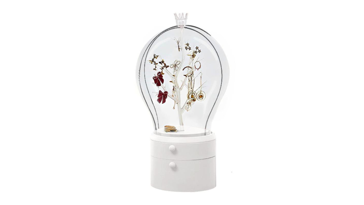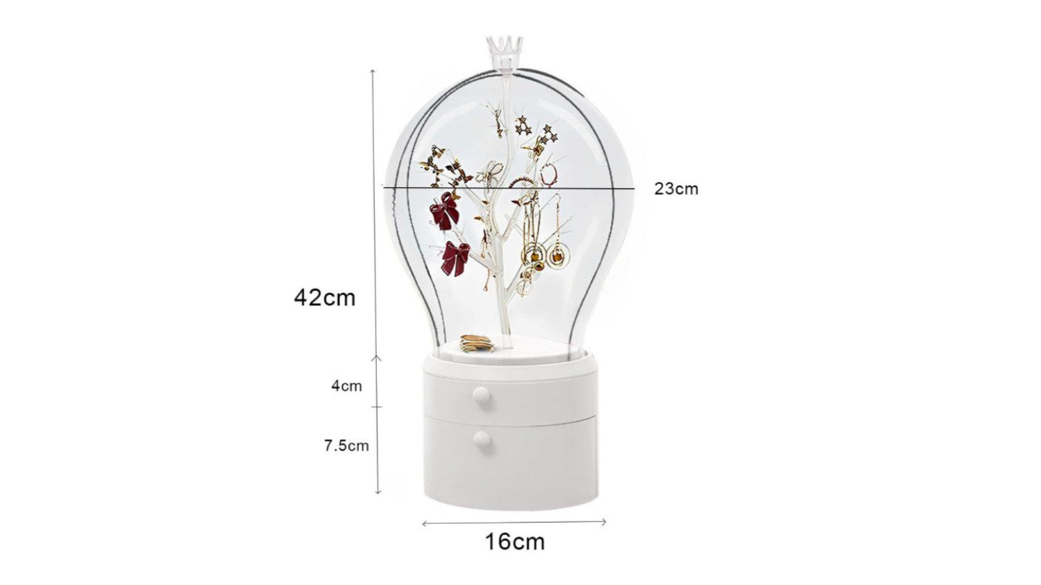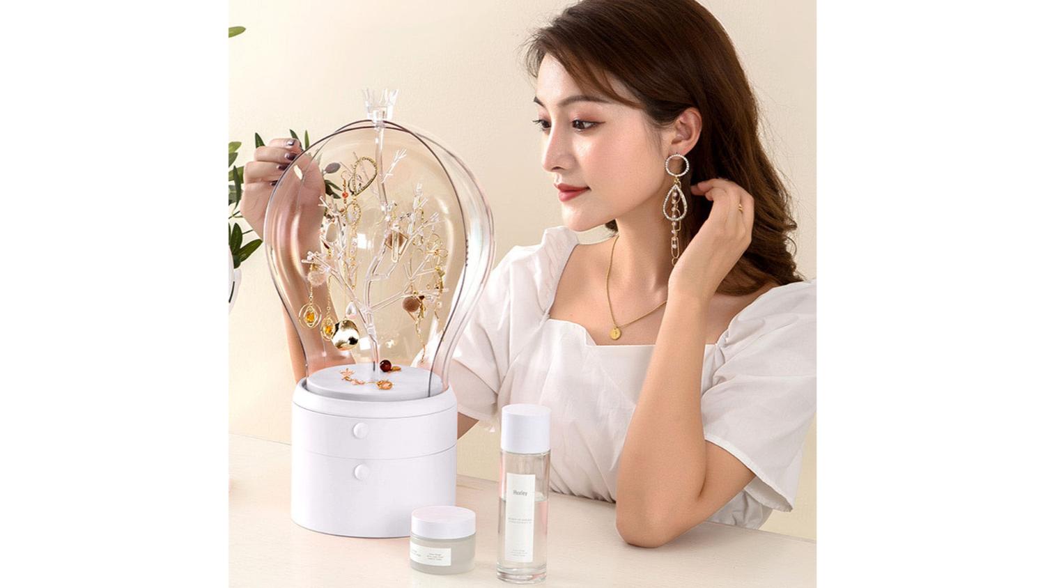 Store your accessories in style with the SOGA Fairytale Jewellery Organiser with Drawers! It boasts a 360-degree rotating design with built-in LED lights, transforming your jewellery selection into a dazzling display. Crafted from durable ABS plastic, it features two spacious drawers and a transparent cover to protect your treasures from dust and water, all while letting their beauty shine through.