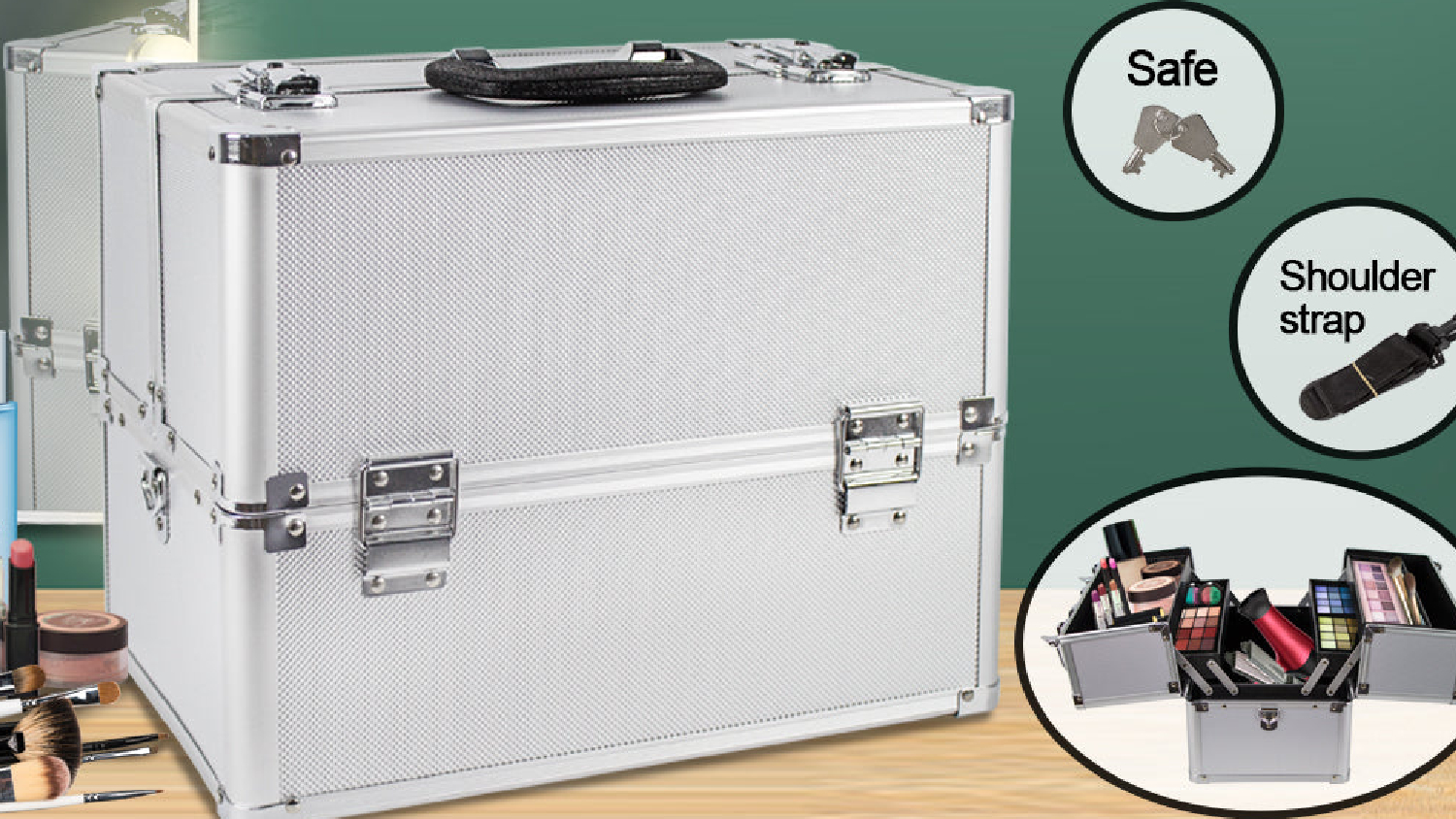 *TSB Living Portable Makeup Case w/ Handle, Shoulder Strap Silver only. Other colours are sold separately.