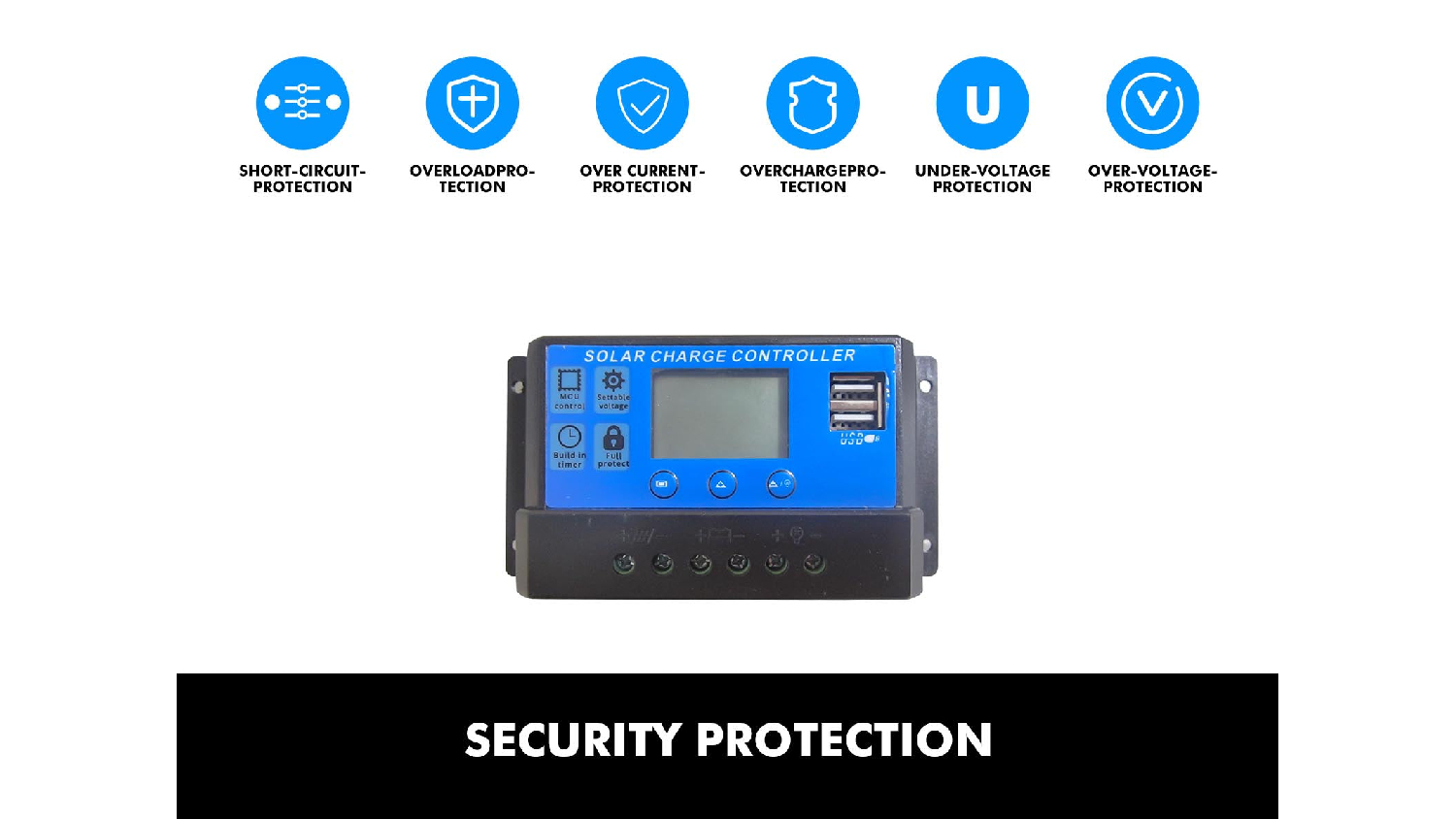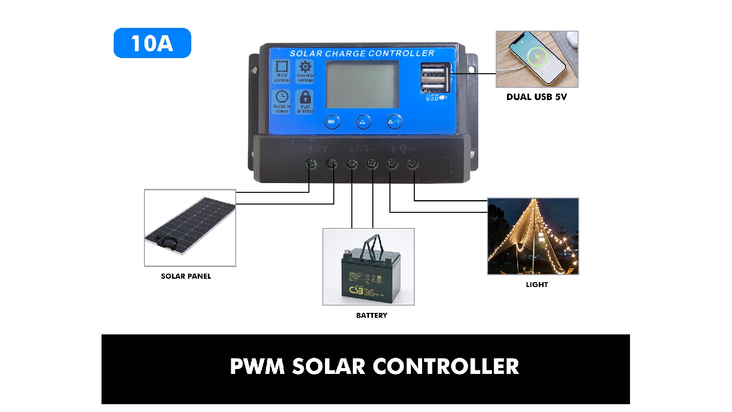 Whether you are looking for a solar controller to charge your battery or to prevent unnecessary damage, the TSB Living Universal Solar Panel Control Unit 10A has got you covered! This controller can be connected to two solar panels, offering improved charging efficiency. It also boasts a built-in LCD display for real-time viewing of the system status.