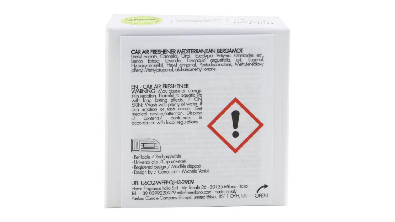 Infuse your car with the rich aroma of Mediterranean Bergamot using the Millefiori Go Car Air Freshener. This clever refillable system easily clips to your dashboard vent, letting you fine-tune the amount of natural fragrance released. Enjoy an instant burst of freshness that keeps your car delightful for up to two months.