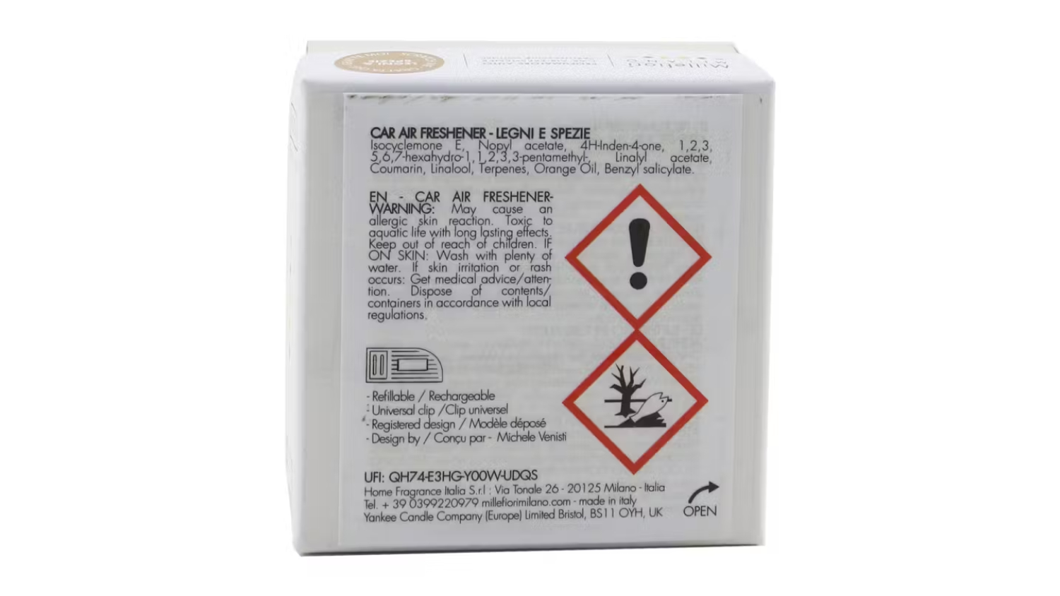 Make every drive a pleasure with the Millefiori Icon Urban Car Air Freshener (Legni E Spezie)! This functional air freshener provides a fine, natural fragrance that fills your car, and its universal clip ensures easy installation. Get ready for a continuous, delightful scent that can last for up to two months.