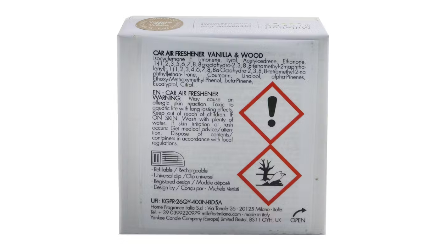 Make every drive a pleasure with the Millefiori Icon Urban Car Air Freshener (Vanilla & Wood)! This functional air freshener provides a fine, natural fragrance that fills your car, and its universal clip ensures easy installation. Get ready for a continuous, delightful scent that can last for up to two months.