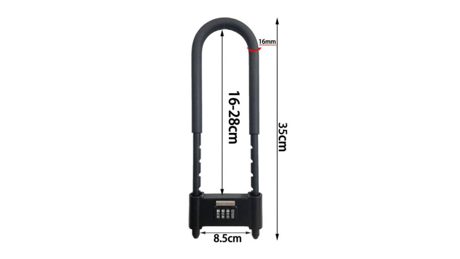Protect your gear with the Kmall Anti-Theft Combination U-Lock! This security solution features a keyless design, a durable 16mm shackle, up to 10,000 combination options, and an adjustable lock that fits various objects. It is ideal for securing your bike, scooter, gates, fences, and more. Plus, the protective rubber coating guards against scratches, making it the perfect all-around security solution.