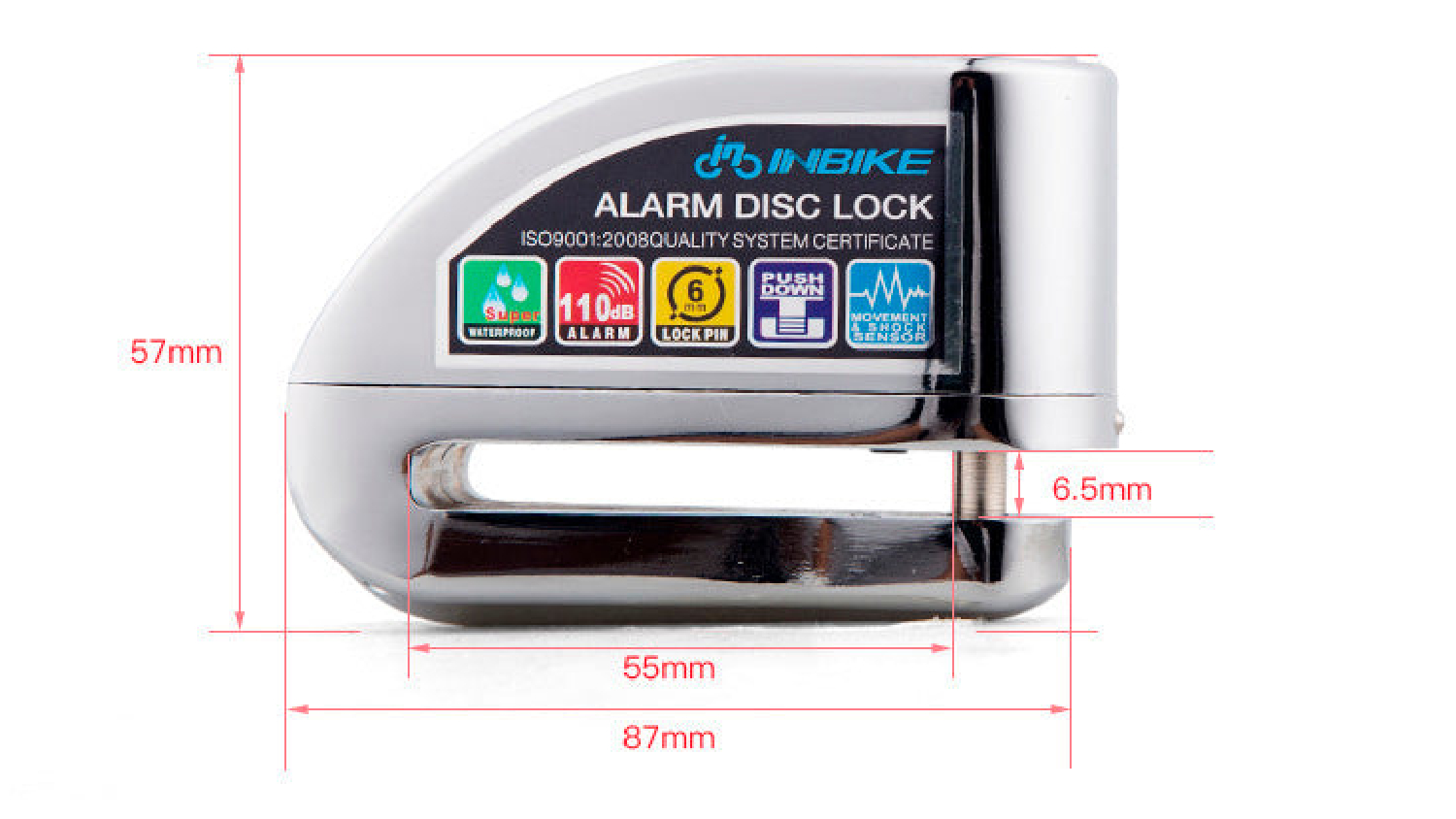 Keep your bike safe and secure with the Kmall Anti-Theft Motorcycle Disk Lock with Alarm! Whether you're parking outside or at home, this brake disc alarm lock is your ultimate security solution. It boasts a 110-decibel alarm that activates upon sensing any vibration or shock. Plus, the Zinc Steel alloy and carbide-reinforced hardened steel locking pin adds peace of mind. It also includes 6 LR44 batteries and 3 brass security keys, so you're always prepared.