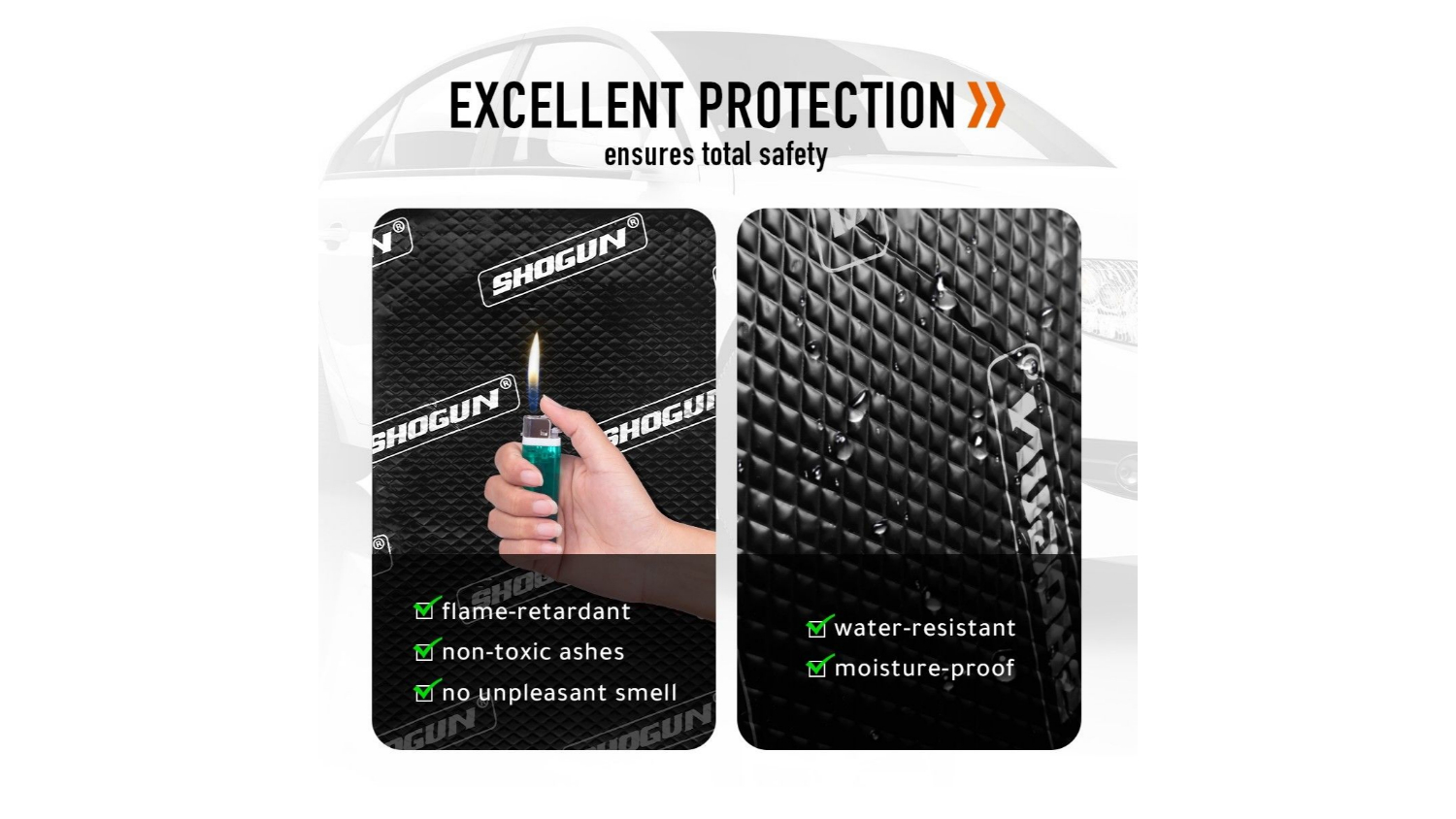 Reduce vehicle noise and vibration with the Shogun Sound Deadener Butyl-3. This high-performance sound deadening mat features strong adhesive backing, cold and heat resistance, and a robust, waterproof and fire-resistant structure. It is ideal for cars, trucks, SUVs, and RVs, enhancing both comfort and sound system quality.