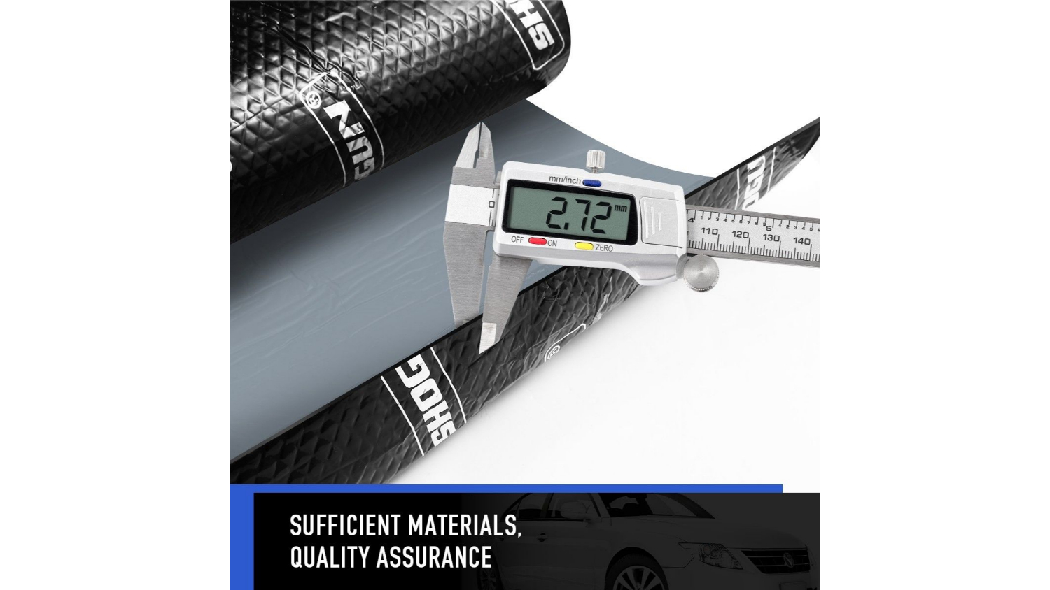 Reduce vehicle noise and vibration with the Shogun Sound Insulation Mat Butyl-7. This high-performance sound deadening mat features strong adhesive backing, cold and heat resistance, and a robust, waterproof and fire-resistant structure. It is ideal for cars, trucks, SUVs, and RVs, enhancing both comfort and sound system quality.