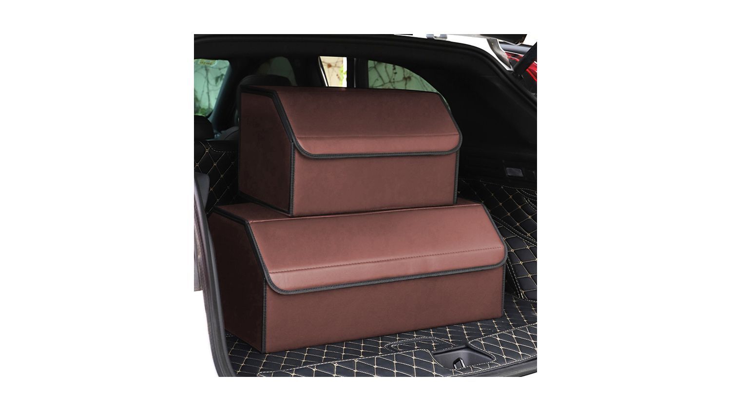 Soga Leather Car Boot Storage Box Medium - Coffee
