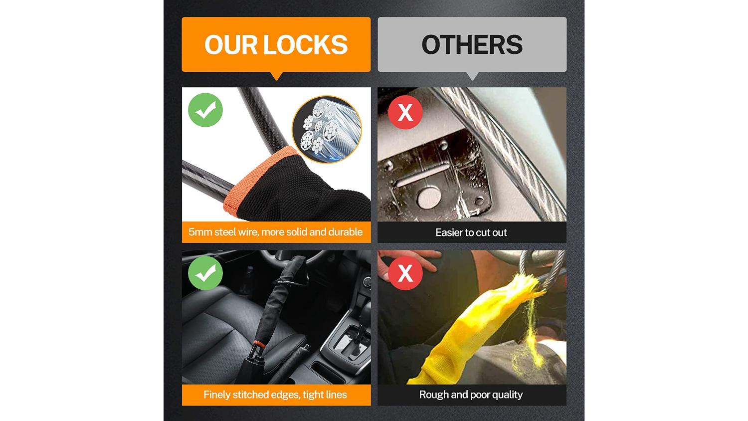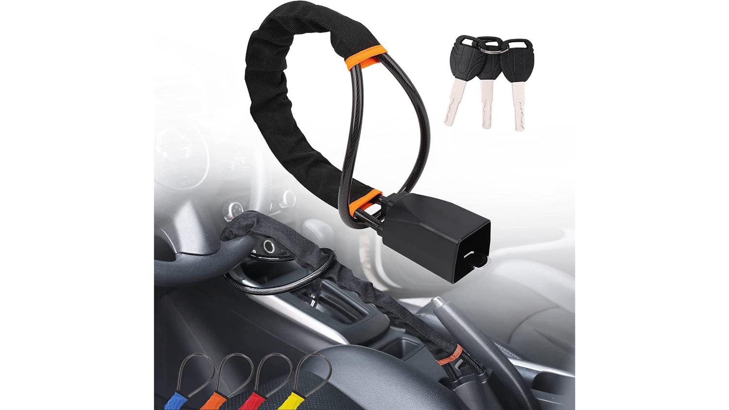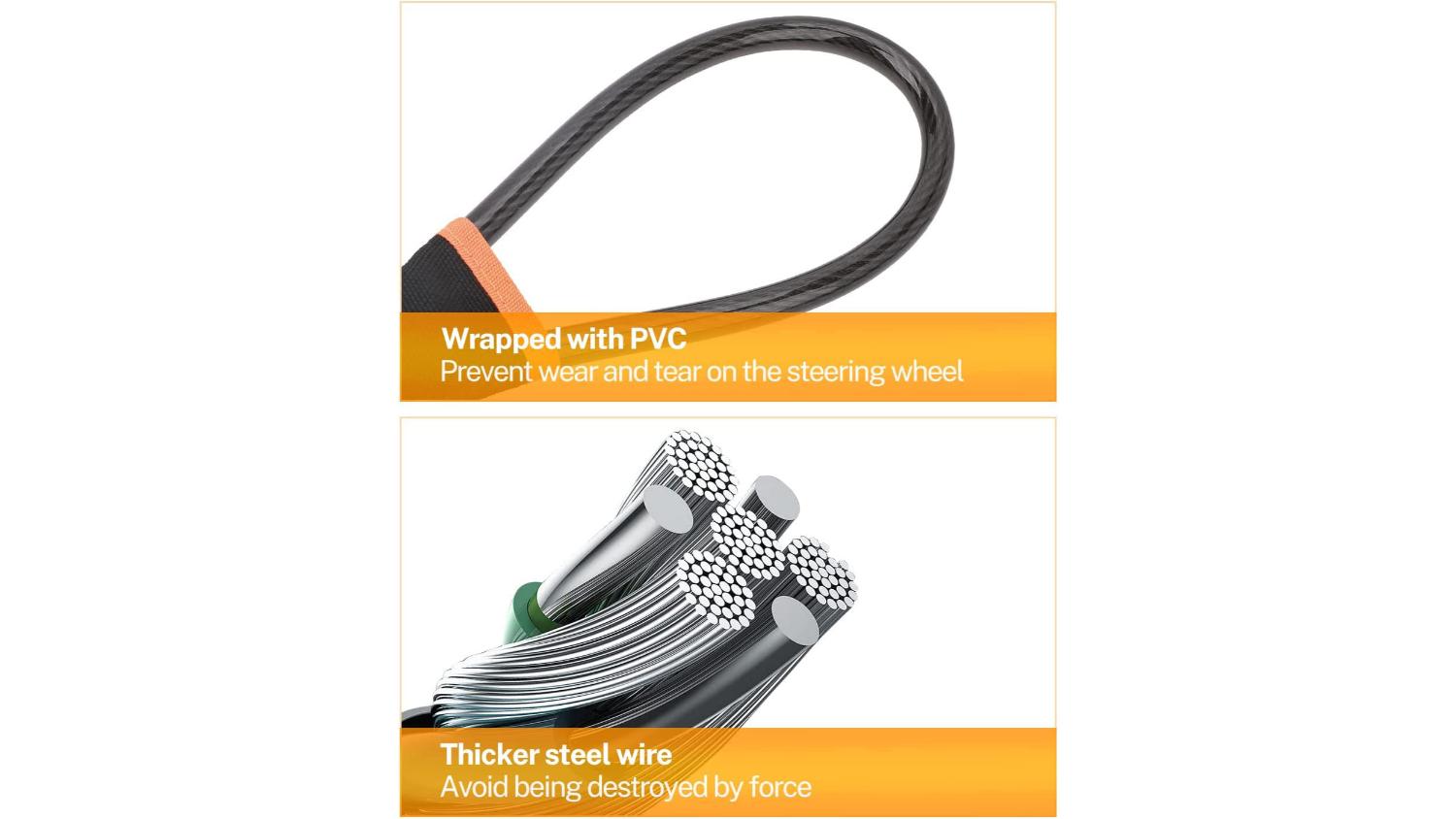 Kmall Anti-Theft Wire Steering Wheel Lock - Black