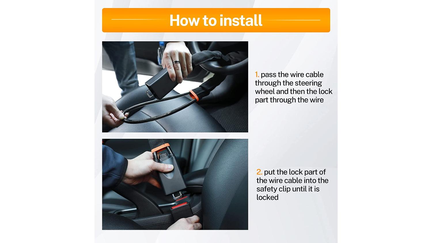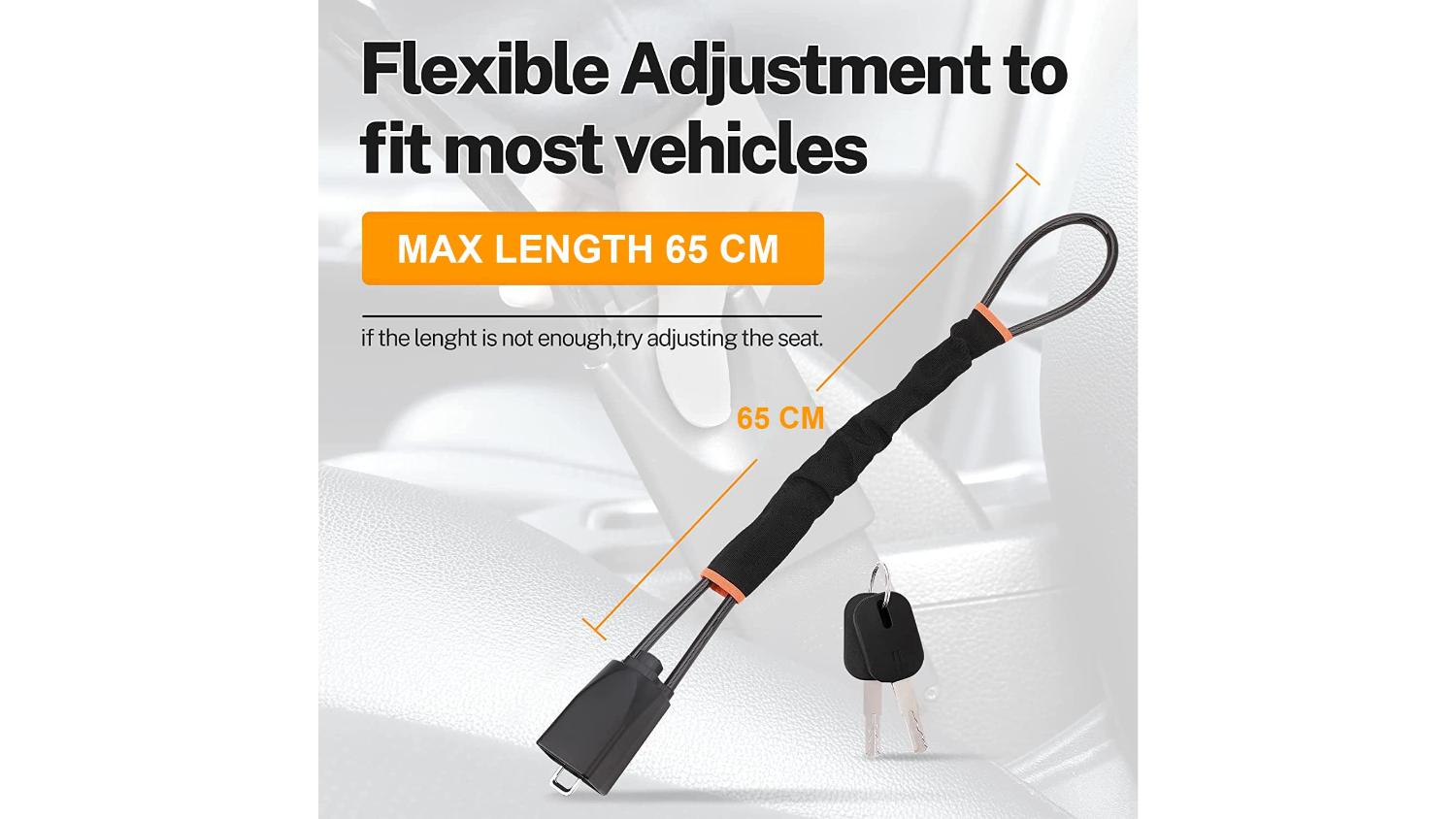 Defend your car against theft with the Kmall Anti-Theft Wire Steering Wheel Lock! This innovative lock secures both your steering wheel and belt socket, making it a total roadblock for carjackers. Made with heavy-duty steel wire with a soft PVC coating to protect your car's steering wheel, this lock is universally designed and installs in seconds.