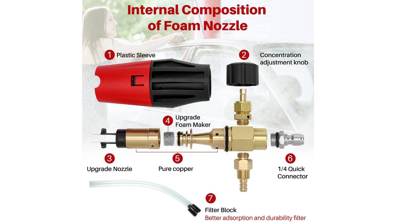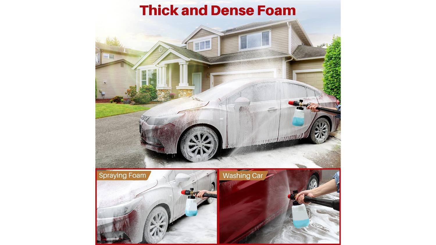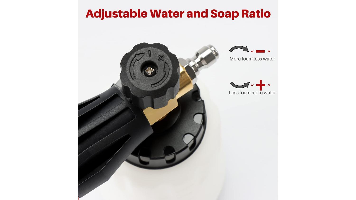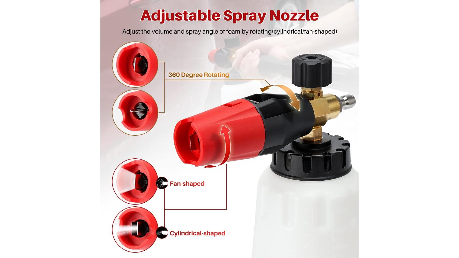 Level up your vehicle cleaning routine with the Kmall Car Wash Foam Blaster Hose Attachment 1L! This tool features a wide neck for easy filling, a heavy-duty foam core, and an adjustable nozzle for perfect spray control. Plus, the rotating nozzle allows you to target every nook and cranny, while the 1/4" quick coupling ensures a secure fit.