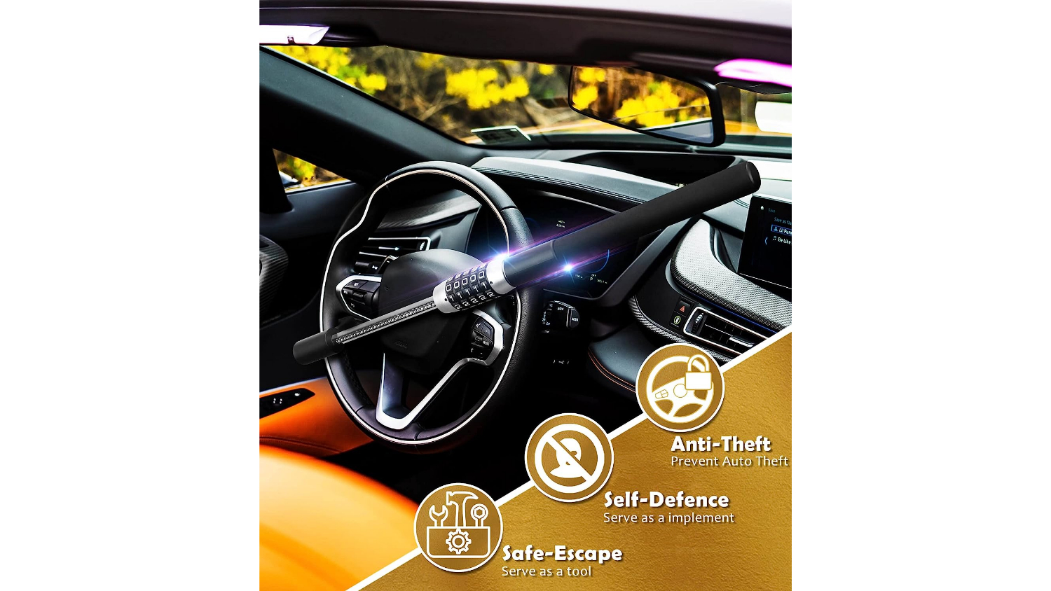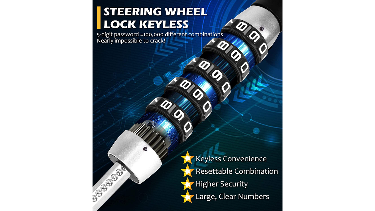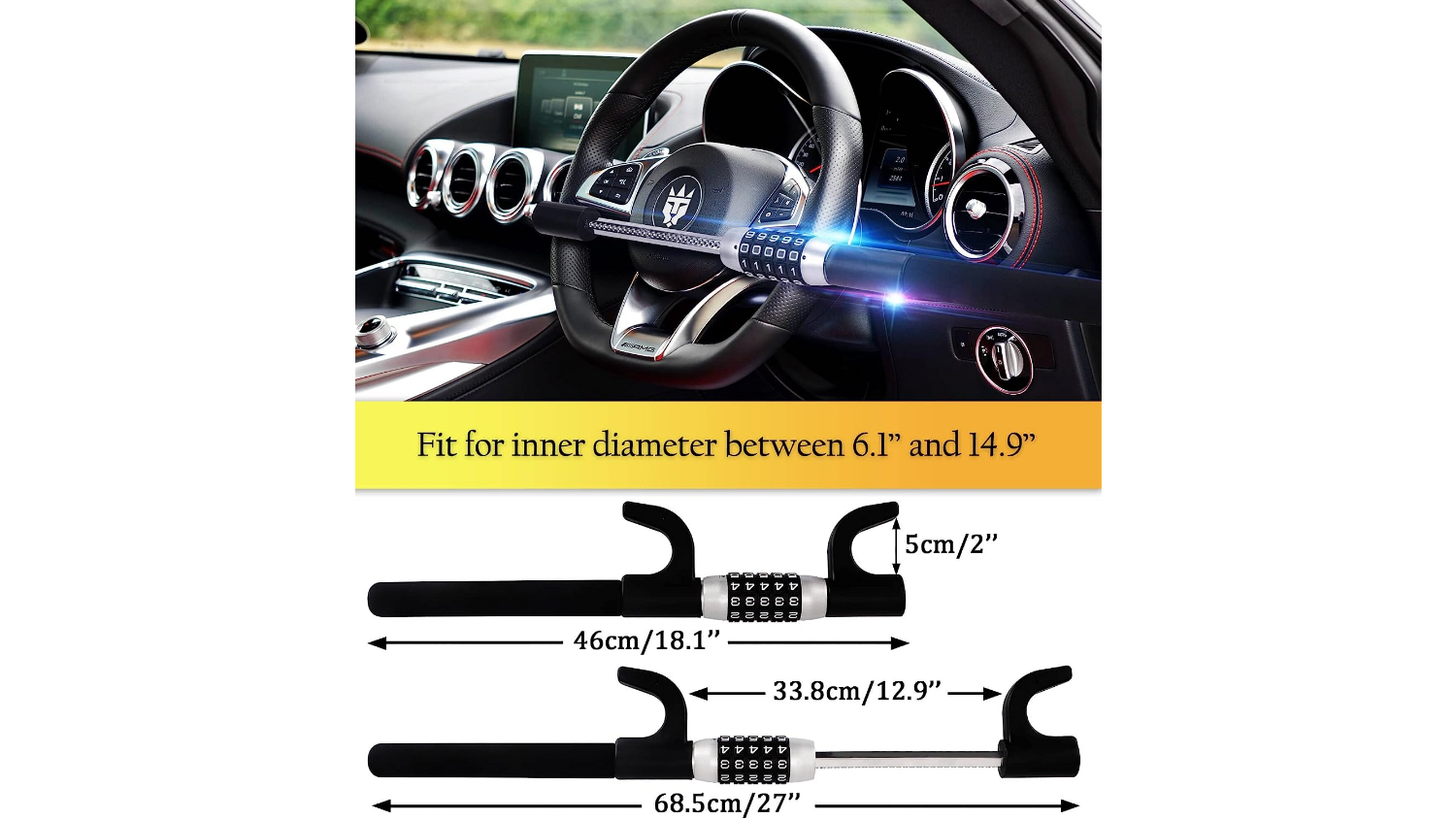Keep your car safe and secure with the Kmall Steering Wheel Combination Lock, offering unparalleled theft deterrence. Crafted from high-performance zinc alloy with a twin hooks design, this lock offers superior strength and security against theft attempts. With a universal fit and adjustable sizing, this lock is suitable for a wide range of vehicles, making it an essential accessory for every driver.
