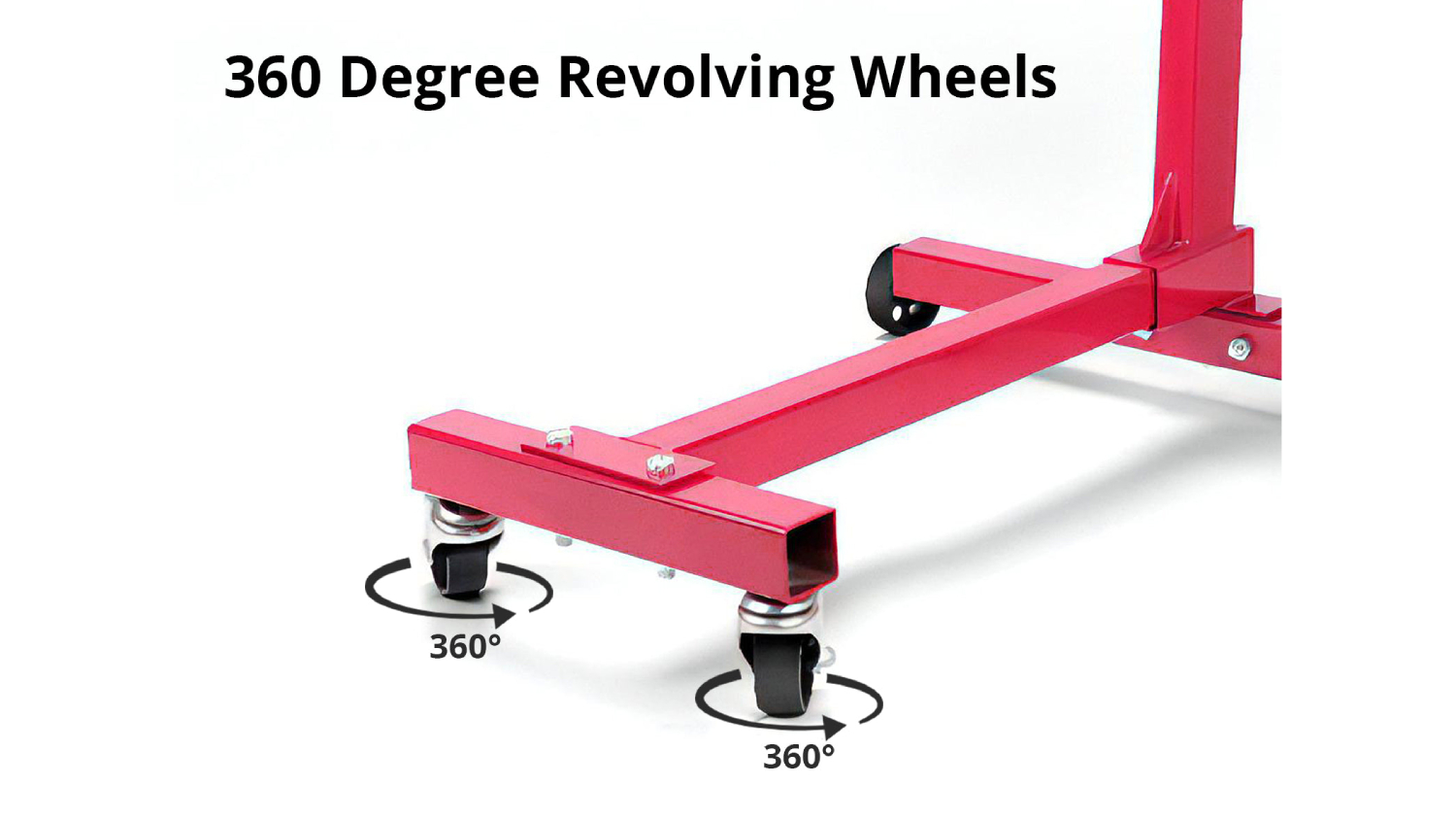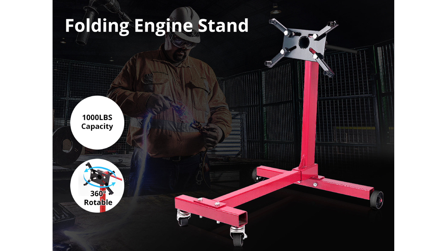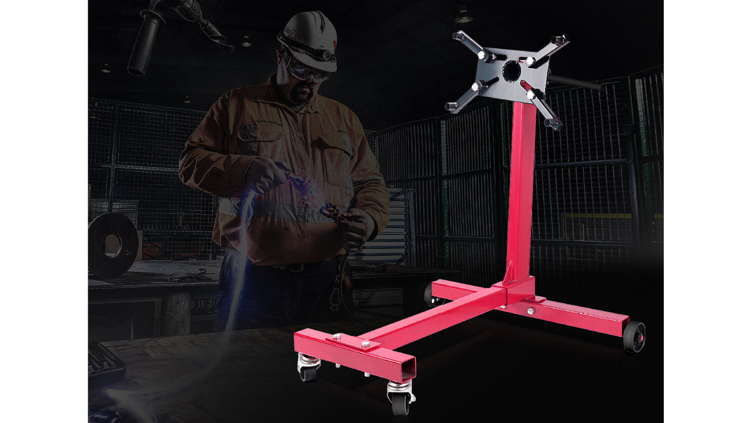 Whether you're a professional mechanic or a DIY enthusiast, the TSB Living Rotatable Engine Mount with Wheels is a must-have for your projects! Made with heavy-gauge steel mechanical tubing and powder-coated finish, this engine stand offers exceptional durability and longevity. It has a 360° rotating mount and front swivel casters to ensure smooth manoeuvrability.