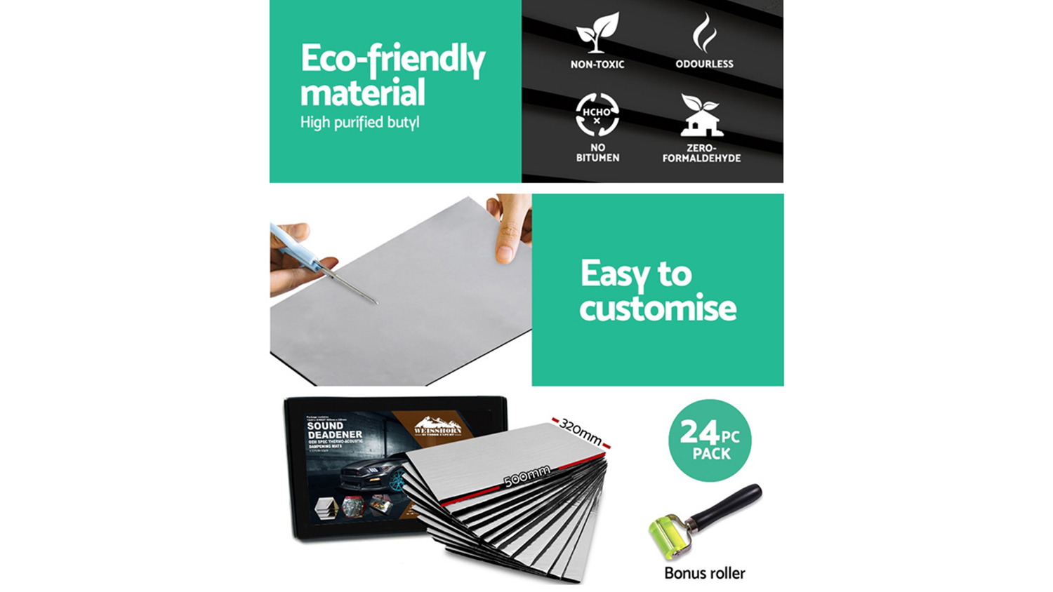 Enhance your vehicle’s noise and vibration performance with the Weisshorn Car Sound Deadener! This nifty product is engineered with an aluminium top layer and a butyl-based rubber to ensure long-lasting performance. It also features an eco-friendly design, making it safe to use. Moreover, this sound deadener is also useful for sealing air and water leaks.