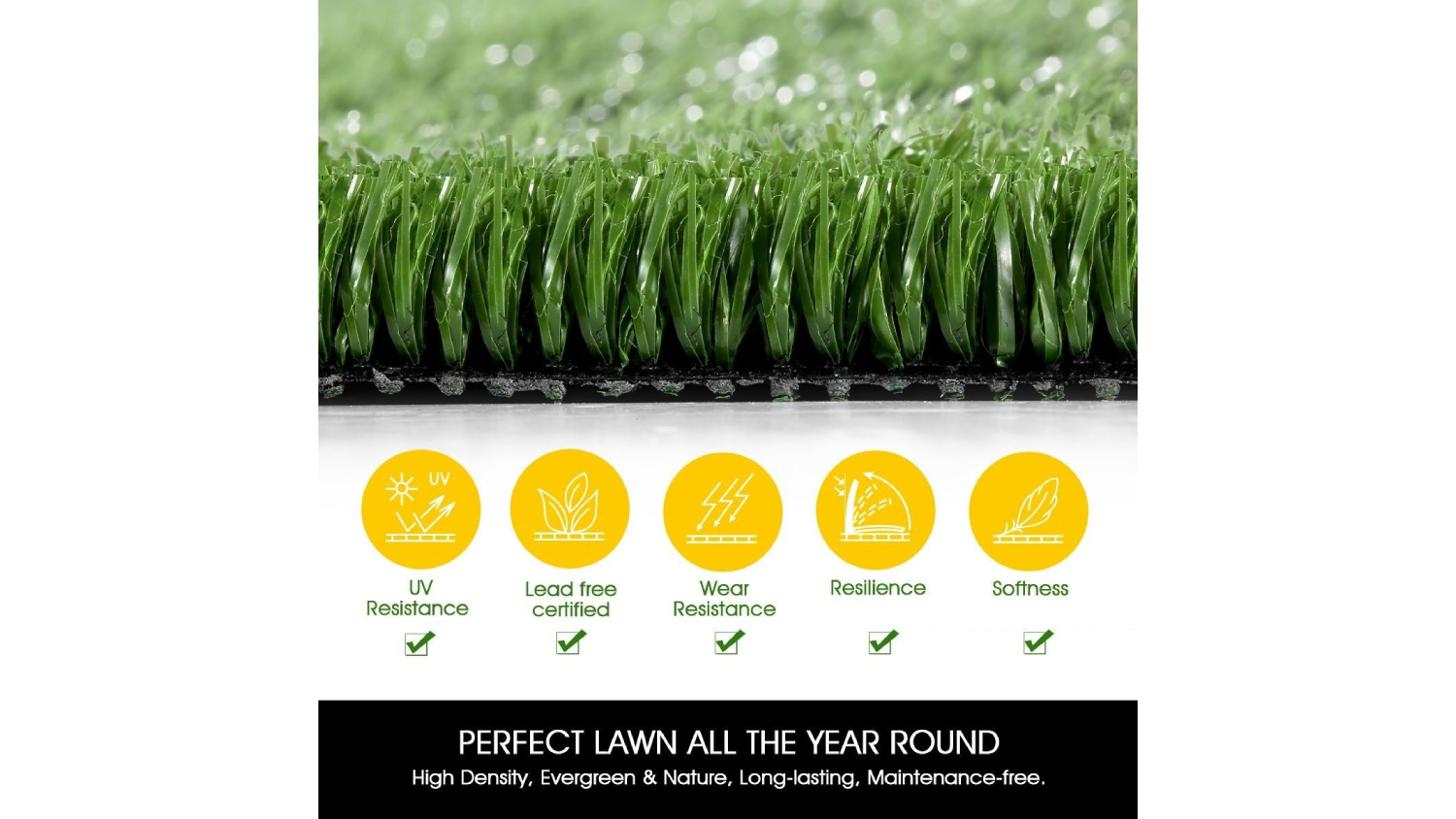 The EdenGrass Artificial Grass 20sqm is your no‑fuss solution to getting a beautiful, natural‑looking lawn all year round. Designed with high‑density, weather‑resistant fibres and UV‑tested for long‑lasting colour, this 12mm turf works perfectly in backyards, rooftops, poolside areas, and playgrounds. Its triple‑layer backing provides superior drainage, while its non‑toxic, odourless materials meet strict standards for health and safety. Durable, low‑maintenance, and family‑friendly—this artificial grass keeps your outdoor space picture‑perfect.