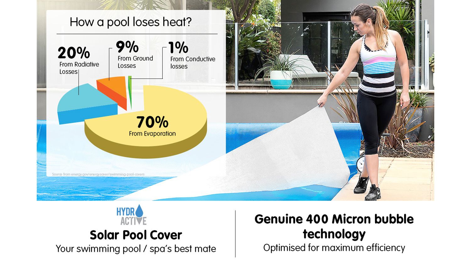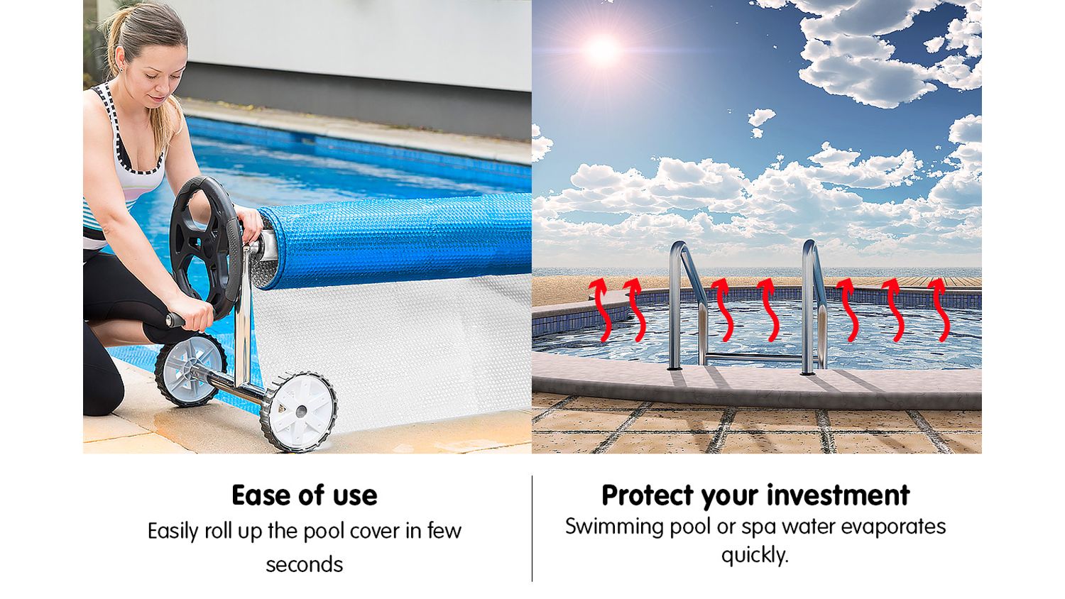 Always keep your pool crystal clear and ready to use with the HydroActive Pool Roller And Cover! This robust genuine 400-micron cover boasts a UV-stabilised material, keeping your pool clean and litter-free. Plus, it also comes with a 5.5m roller that is very easy to use. Now you can keep leaves and dirt at bay, as well as save water and money in the long run!