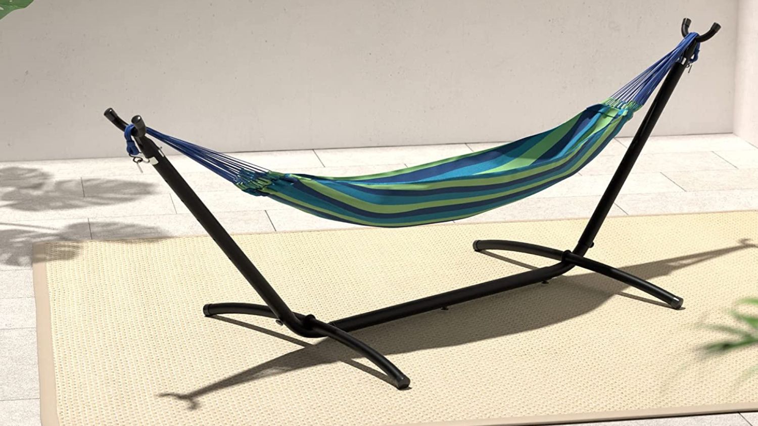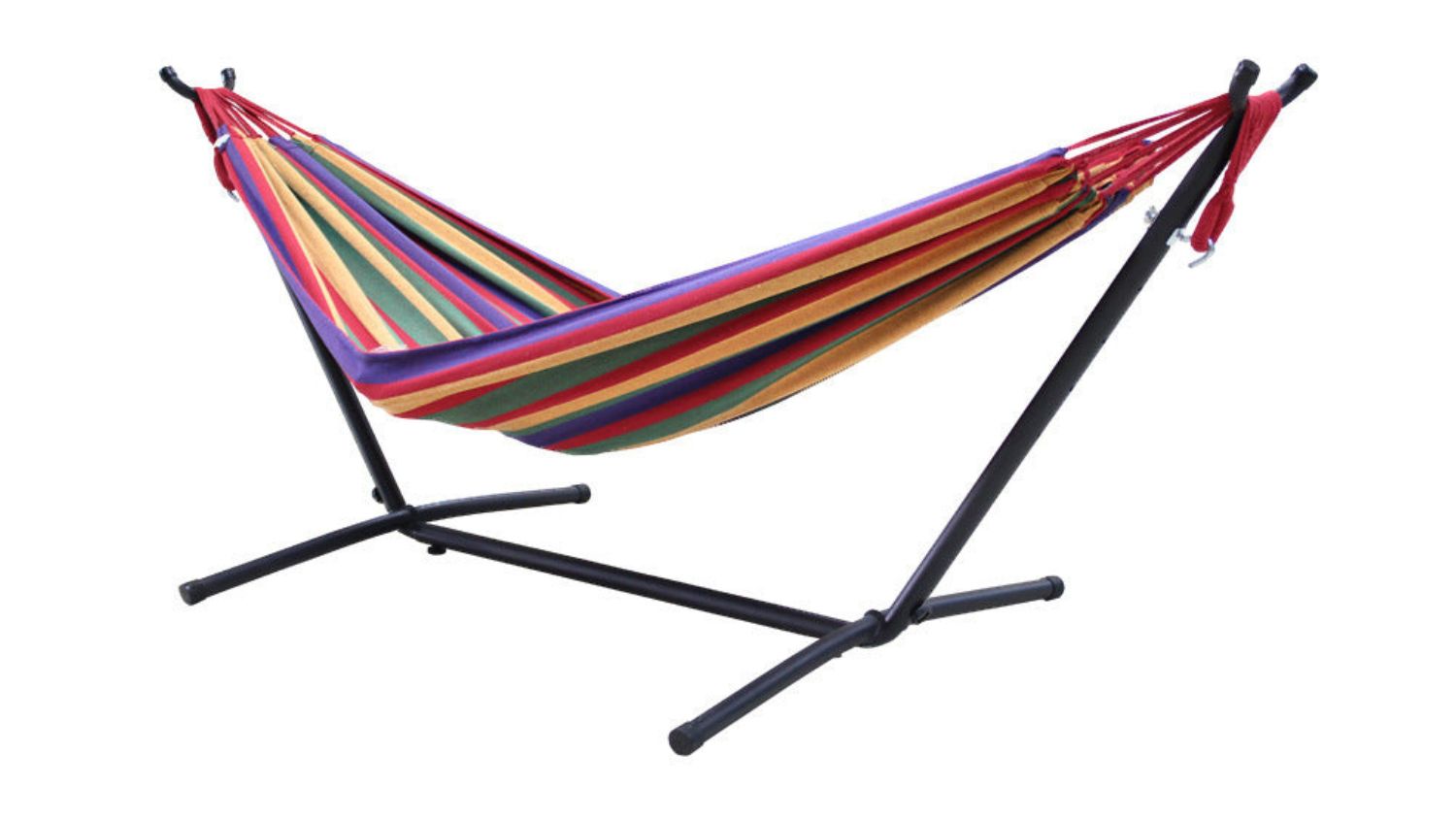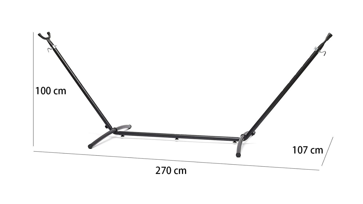 Take relaxation with you using the Kmall Heavy Duty Hammock Stand. This 270 cm stand features a durable steel-tube construction with a sleek black finish. It includes a carrying case—ideal for enjoying ultimate comfort at home, camping, or on the go. All parts are included for easy assembly.