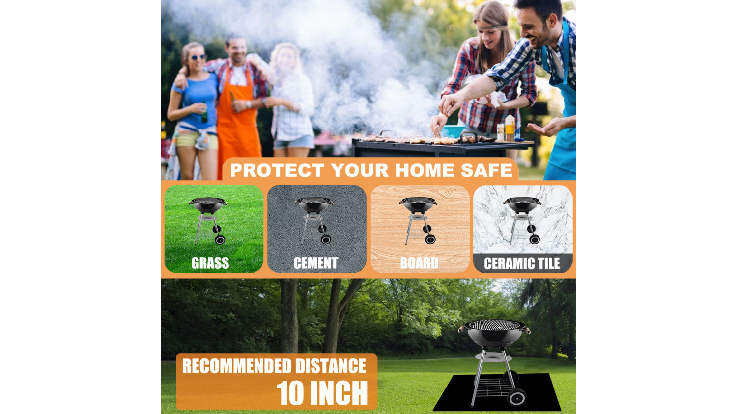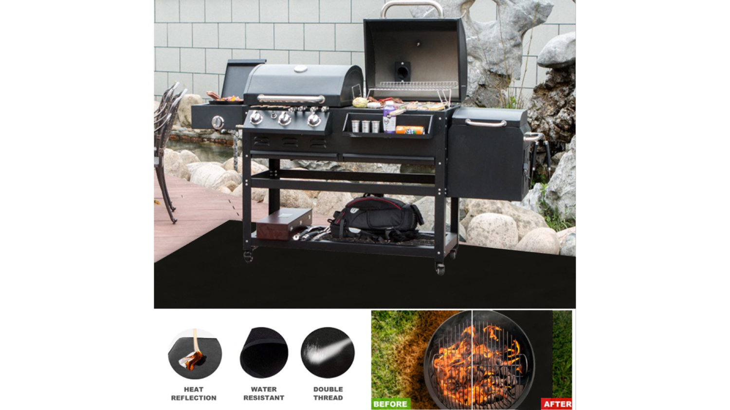 Keep your deck safe while you grill! The Kmall Reusable Under Grill Protective Patio Mat is made from durable fibreglass with a silicone coating on both sides, designed to withstand extreme heat and protect against sparks, ash, and flames. Waterproof and oil-resistant, it traps spills on the surface for easy cleanup—just rinse or wipe with soapy water. Perfect for grills, smokers, fire pits, and even indoor stoves.