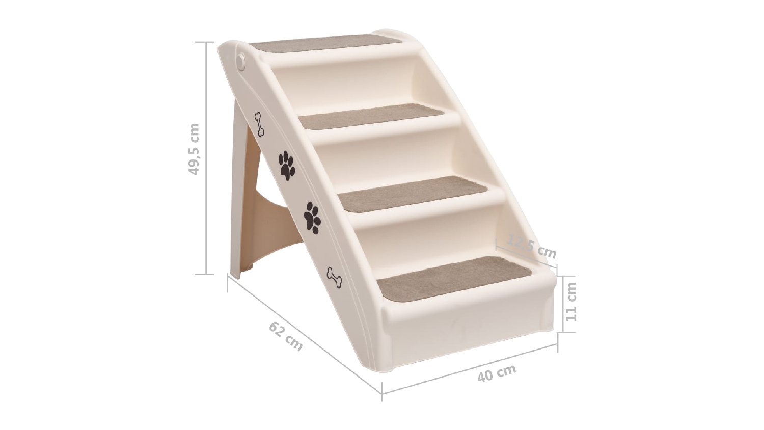 NNEVL Folding Dog Stairs 62 x 40 x 49cm - Cream