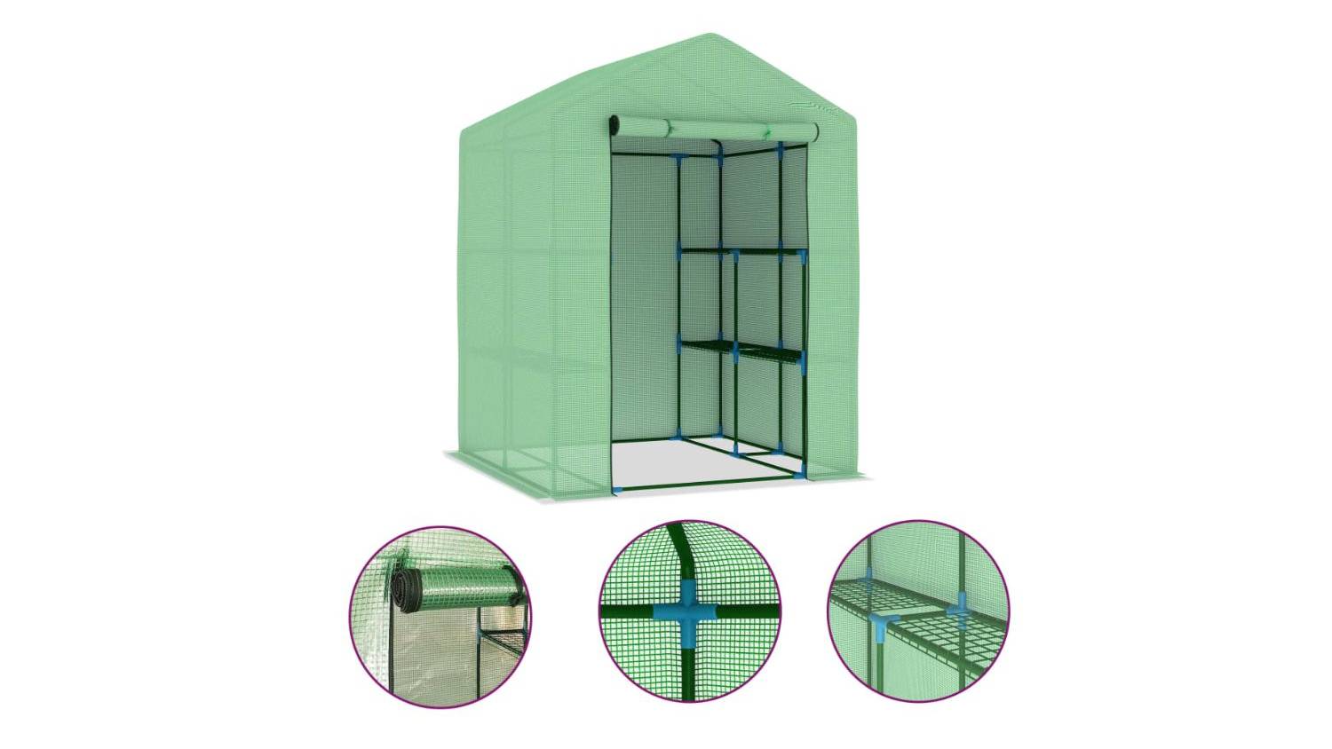 Give your plants the protection they deserve with the NNEVL Greenhouse with Steel Shelves. This spacious greenhouse shields your fruits, veggies, and flowers from harsh environmental elements. It also features a heavy-duty PE mesh and is supported by a sturdy rust-proof steel frame. Plus, this unit’s built-in shelves let you easily display your plants, while its zippered door offers ample ventilation.