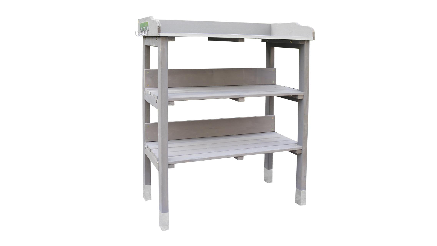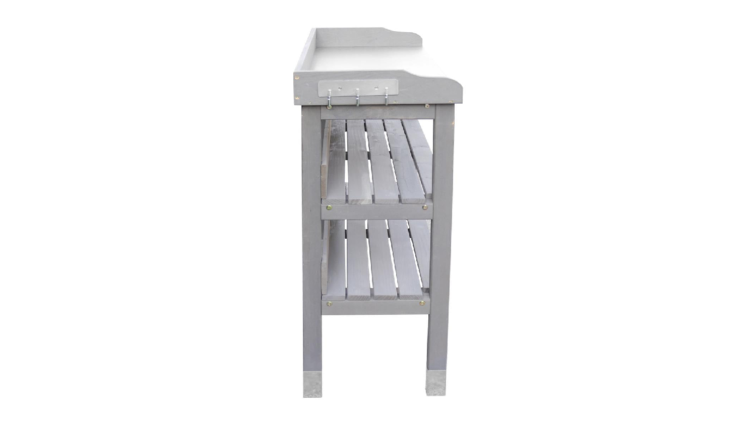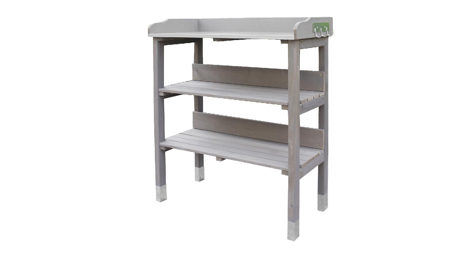 This TSB Living Outdoor Potting Bench is the perfect place to start seeds, transplant seedlings, and pot up your favourite plants. With its wide countertop, 3-tier open shelf, and side hanging hook, you'll have plenty of room to work and organise your gardening supplies.