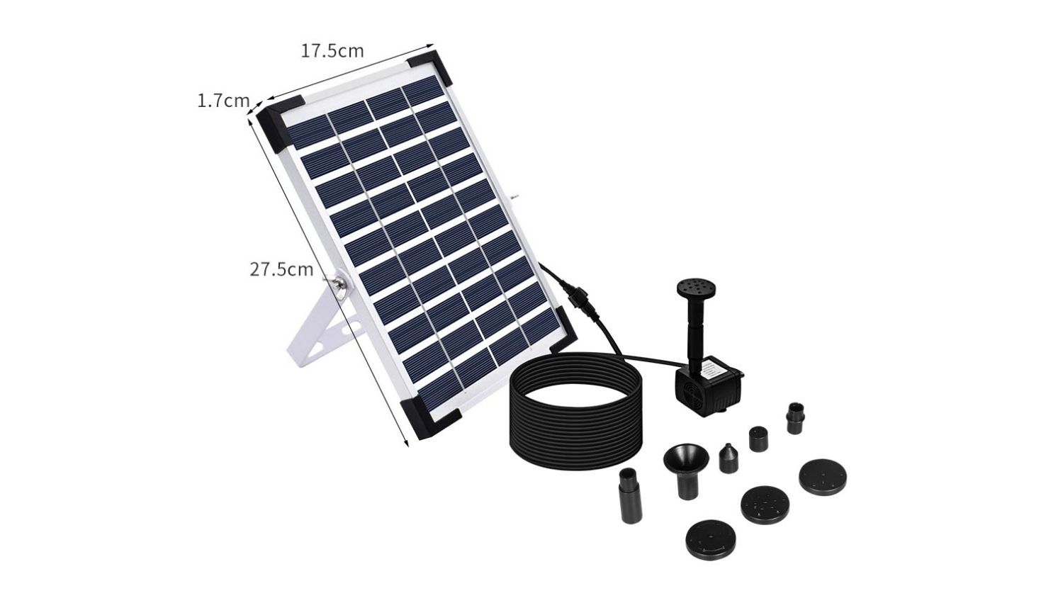Bring your garden to life with the Pretty and Practical Solar-Powered Water Fountain Pump. This compact unit requires no tools for installation and automatically adjusts its height based on the sun's intensity, reaching a peak spray of 60cm during full sun. With its stable polycrystalline solar panel and a variety of eight nozzle shapes, you get a reliable, high-quality fountain that works whenever the sun is out—no buttons, controls, or complicated wiring required.