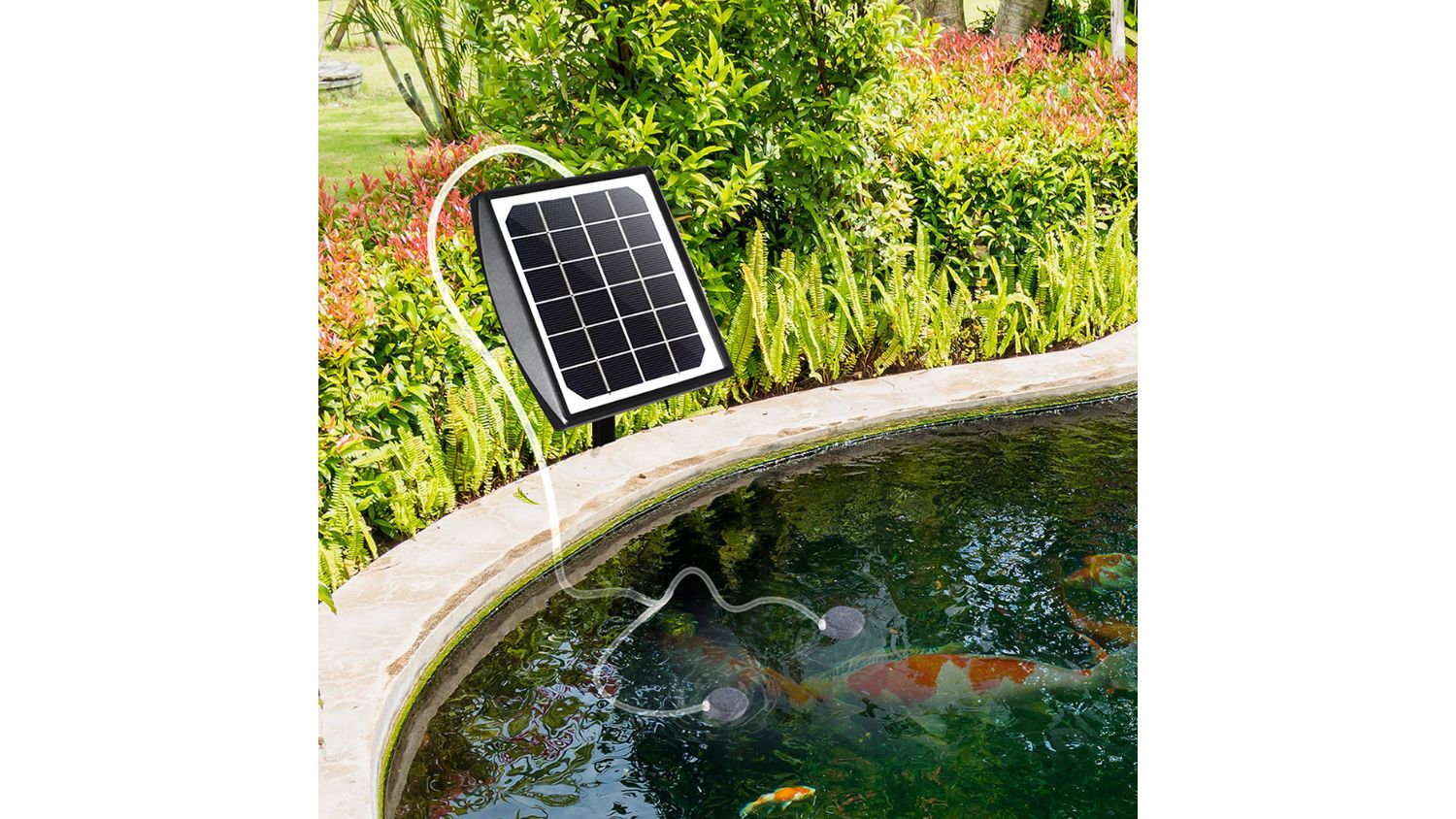 The Pretty and Practical Solar Powered Water Oxygenator is a simple way to boost pond oxygen levels and keep your fish healthy. Powered by the sun by day and supported by a built‑in battery at night, this solar air pump circulates water to prevent oxygen depletion—especially in warm weather. Setup is effortless, simply take the solar panel, place the air stones in your pond, and choose your preferred mode. This eco‑friendly oxygenator supports both fish and plant growth while keeping your pond looking lively and fresh.