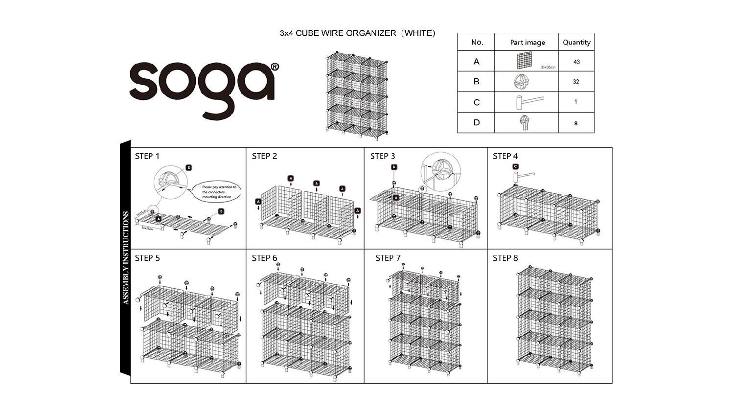 Tidy up your living room, bedroom, corridor, or kitchen with the SOGA Mesh Cube Organiser 12pcs! Constructed from high-quality iron wire mesh and secure ABS connectors, this storage solution ensures a sturdy and reliable structure. It is also incredibly versatile, letting you customise its form to fit your space and style. From clothes, books, shoes, toys, and more, this cube organiser is your go-to choice for decluttering.