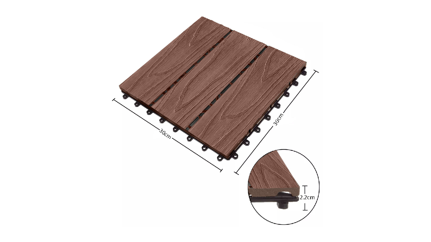 Upgrade your patio, balcony, porch, or backyard with SOGA Outdoor Composite Decking Tiles 11pcs! These durable tiles resist fading, stains, and mould growth, making them perfect for your outdoor space. You can easily install them without specialised tools and enjoy minimal maintenance. The tiles are also slip and fire-resistant for added peace of mind.