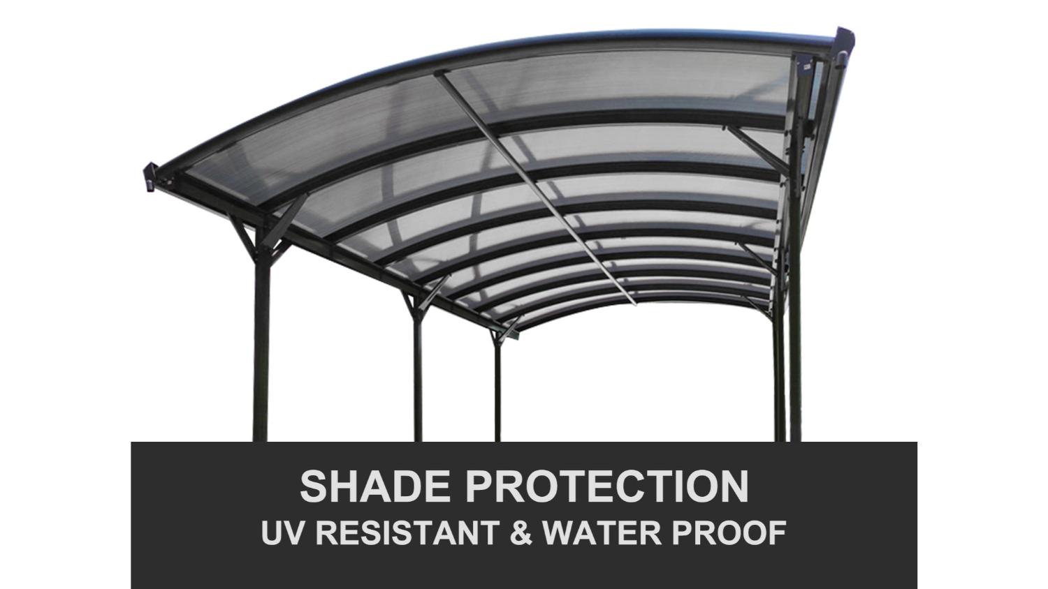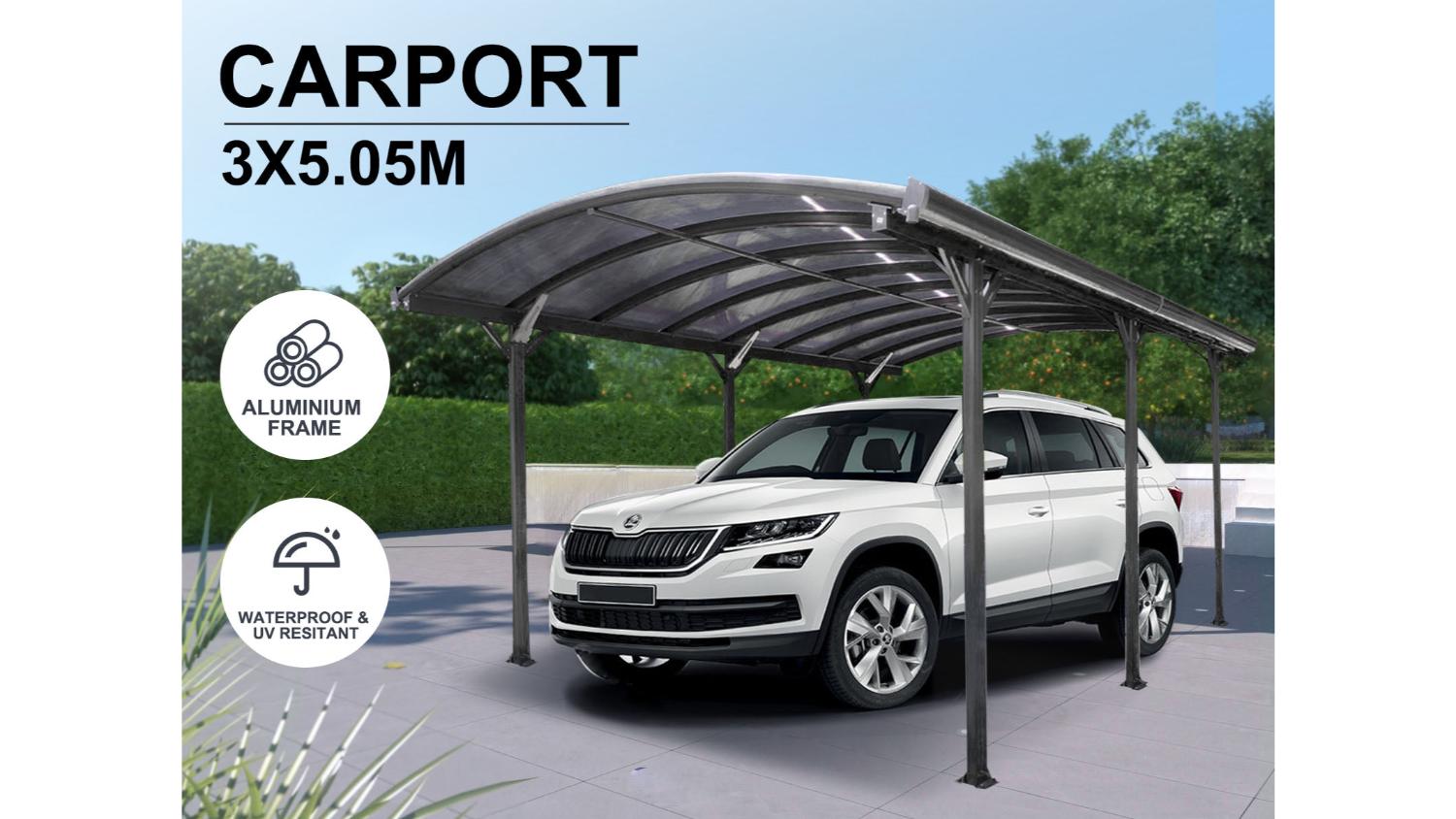 Protect your car and create a versatile outdoor space with the TSB Living Aluminium UV Resistant Carport 3 x 5m. This multi-purpose structure can be used as a carport or a patio cover, providing ample shade and UV protection. Its durable polycarbonate roof panels, powder-coated steel connectors, and sturdy aluminium poles ensure long-lasting stability. With a generous 267cm entry width and 222cm of overhead clearance, you’ll have plenty of room to park your vehicle or enjoy outdoor activities.