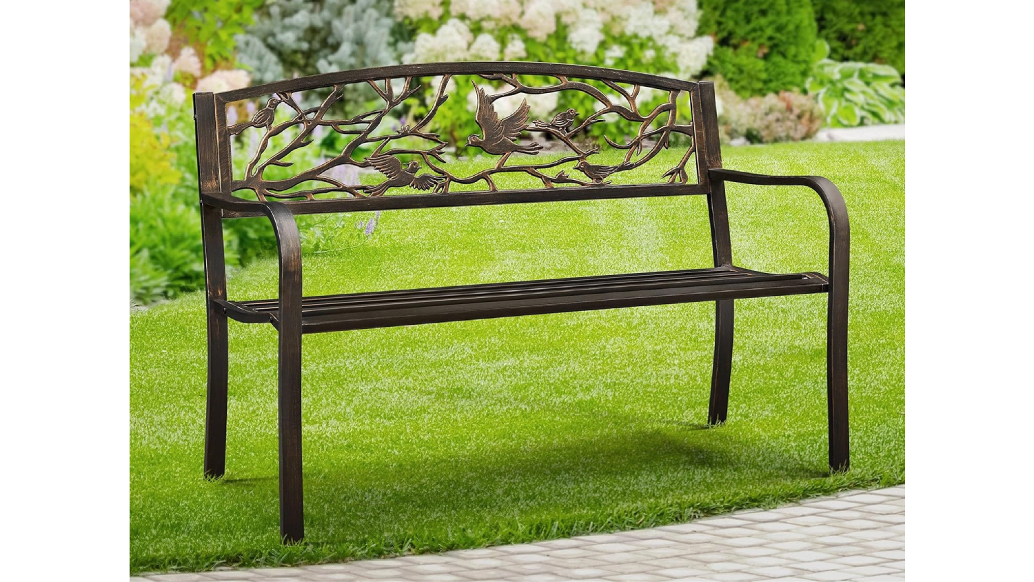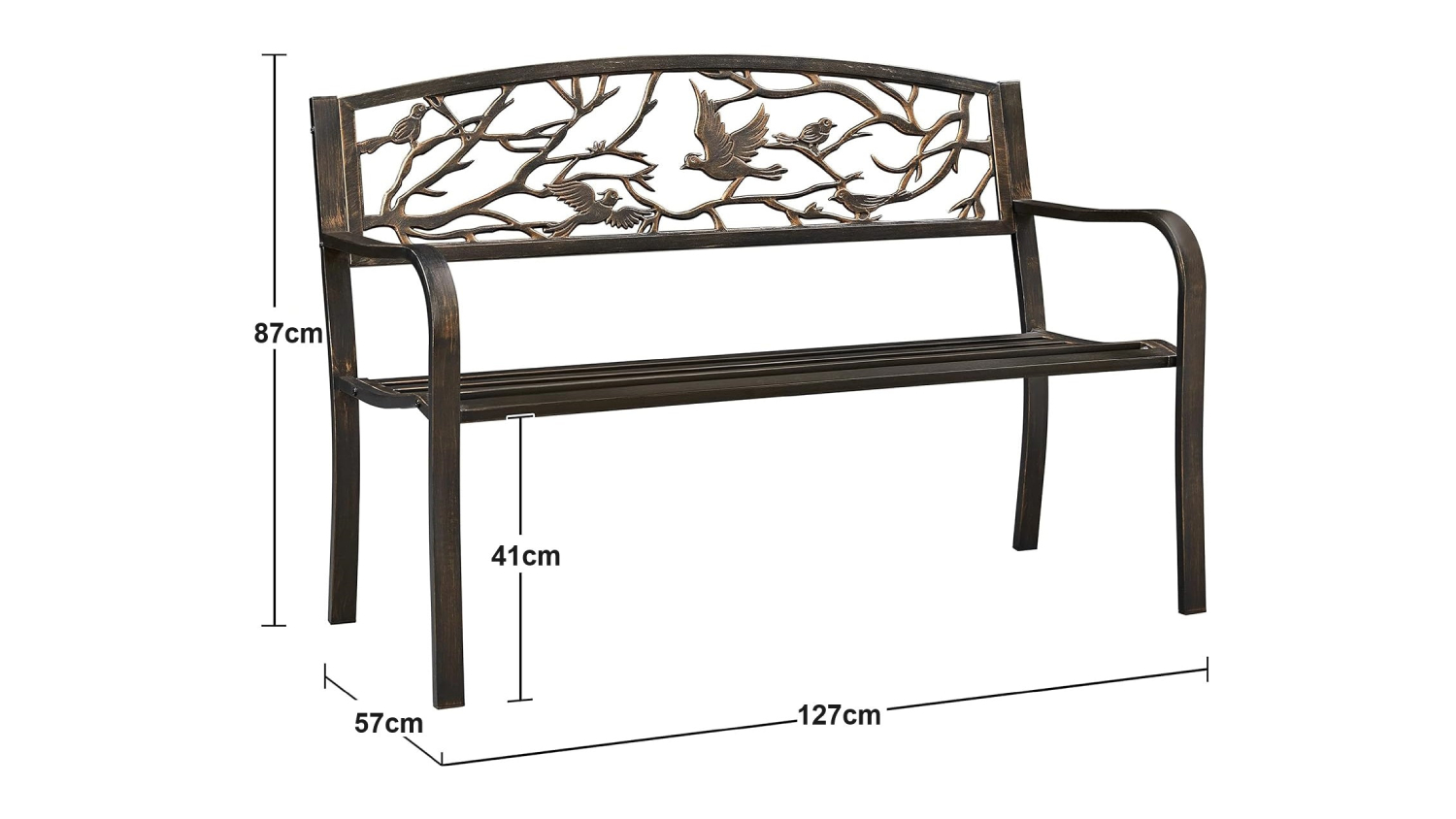 TSB Living Arteferro Cast Iron Garden Bench - Bronze Winter Birds