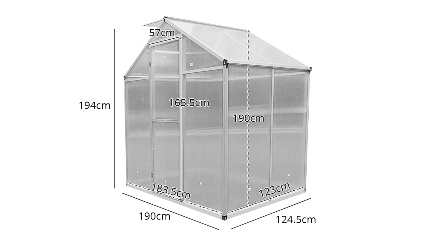 TSB Living Outdoor Aluminium and PC Greenhouse 2.4 x 1.8 x 1.9m