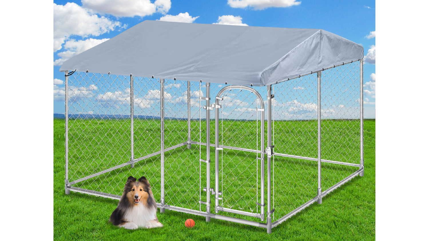 Safeguard your furry friends with the TSB Living Outdoor Fenced Dog Run Roof Attachment! Crafted from durable galvanised steel and featuring a secure locking system, this multipurpose dog run ensures your pets stay safe while enjoying optimum ventilation. Whether for private homes, shelters, or pet hotels, this versatile enclosure is a must-have for pet lovers seeking a reliable and adaptable solution.