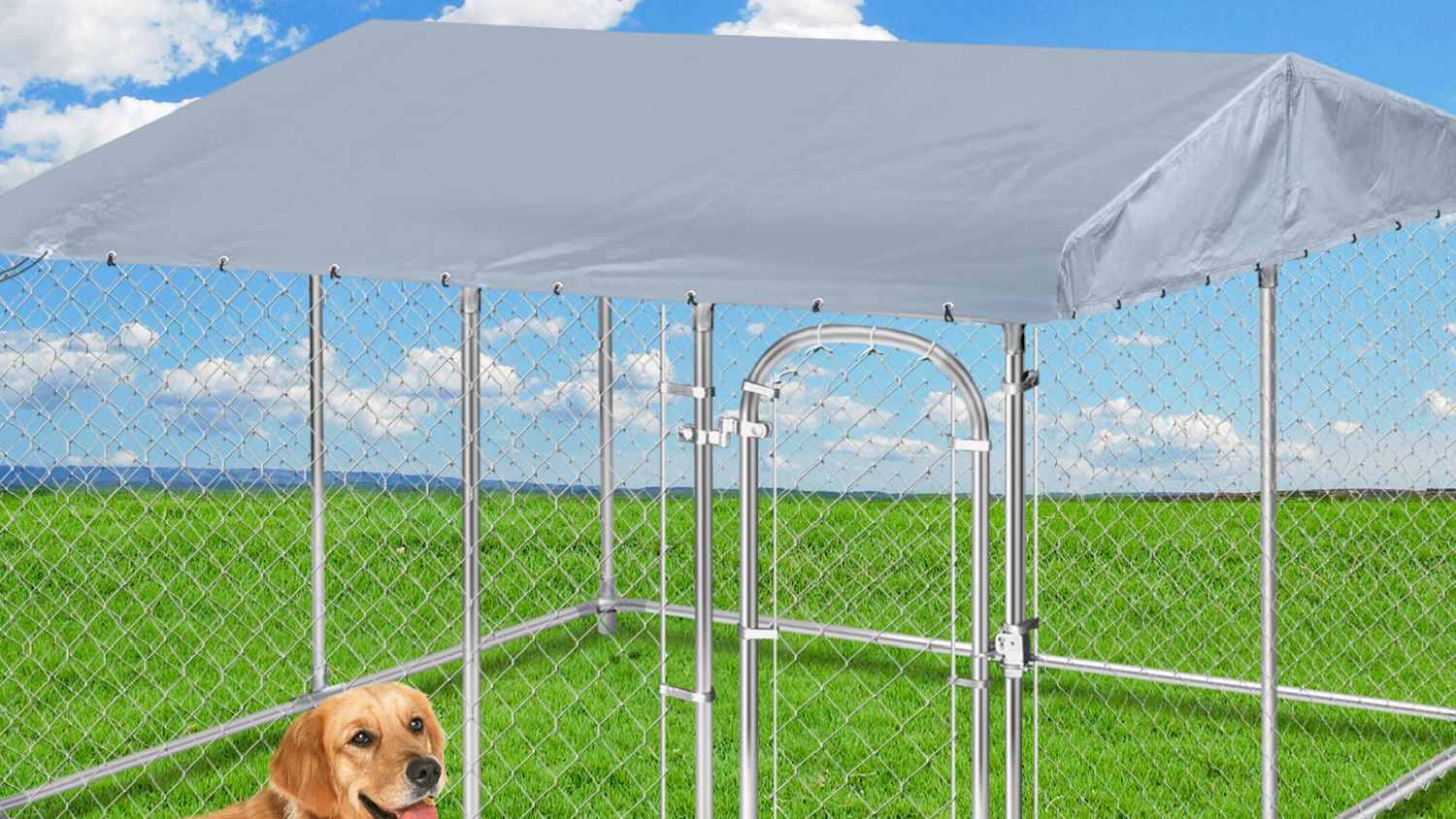 Keep your dog safe and comfortable with the TSB Living Outdoor Fenced Dog Run Roof Attachment. Ideal for private homes, rescue shelters, or pet hotels, this pet enclosure is a must-have for pet lovers. It allows pets to enjoy fresh air and exercise in a secure environment.