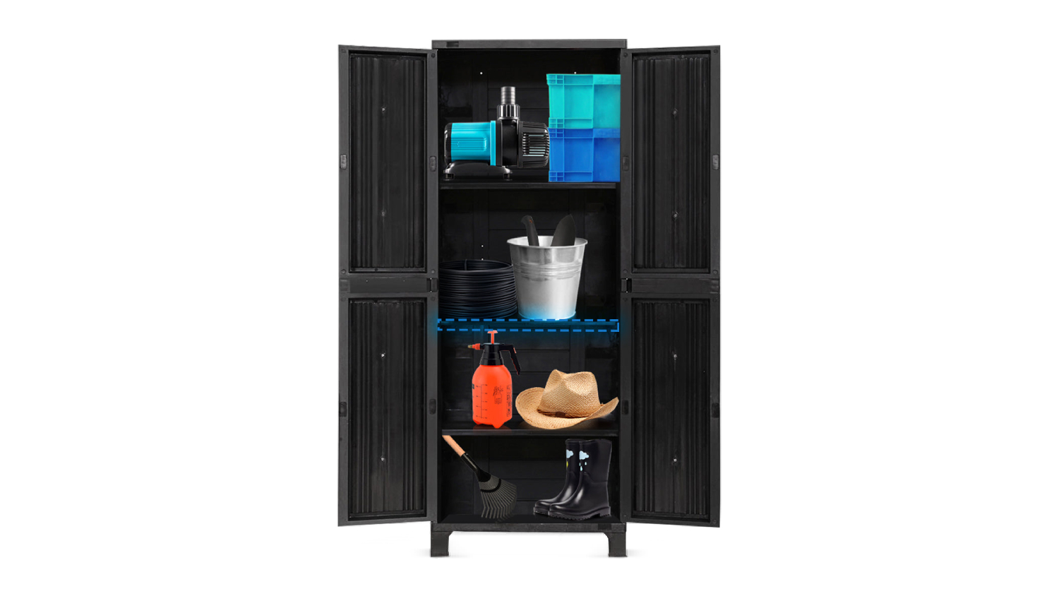 Discover versatile storage with the TSB Living Plastic Outdoor Cabinet with Adjustable Shelf Large! Featuring a robust plastic design and an adjustable shelf, this 2-door cabinet adds a modern touch to your outdoor area while providing ample storage.