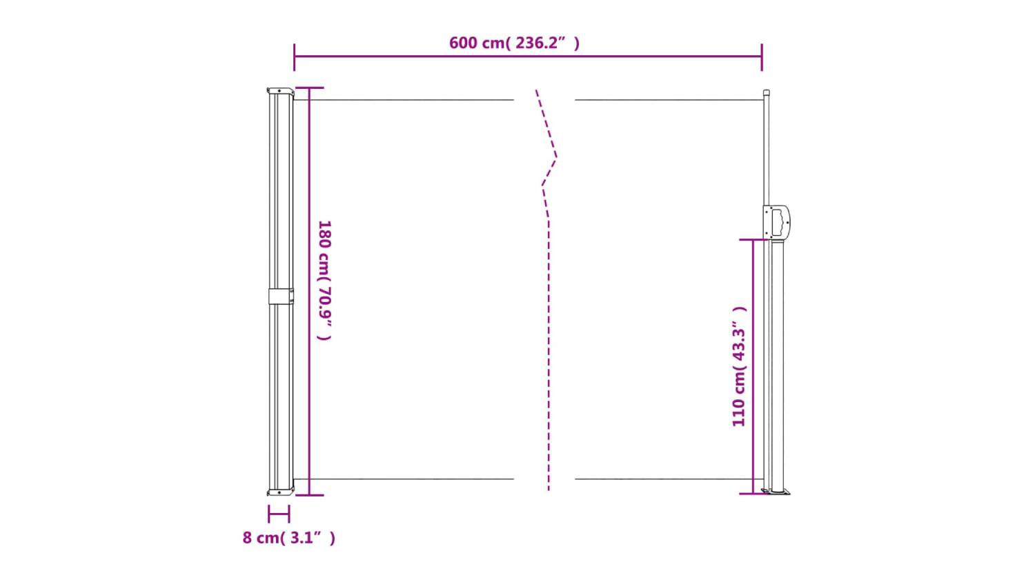 Create the perfect alfresco escape with the VidaXL Retractable Outdoor Side Awning. This privacy screen is made from breathable water and UV-resistant polyester with a PU coating, giving you excellent protection from the sun and wind. With its easy-to-use retractable mechanism, it smoothly rolls back when you're finished, so you can enjoy a private oasis in your garden, on your porch, or even inside your home.