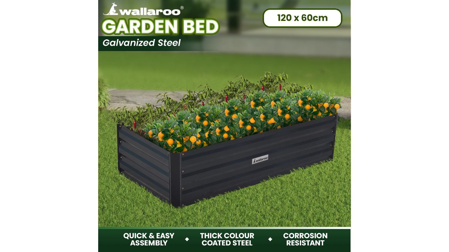Unleash your green thumb and create a thriving garden with the Wallaroo Galvanised Steel Garden Bed 120 x 60cm. This versatile and stylish garden bed allows you to grow a wide range of plants, from vibrant flowers to delicious vegetables. The anti-rust coating and galvanised steel construction ensure durability, making it a reliable choice for all seasons.