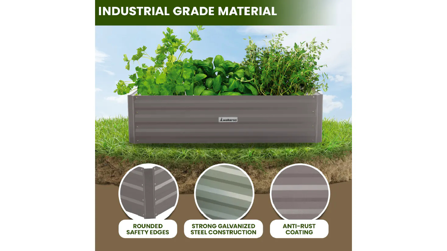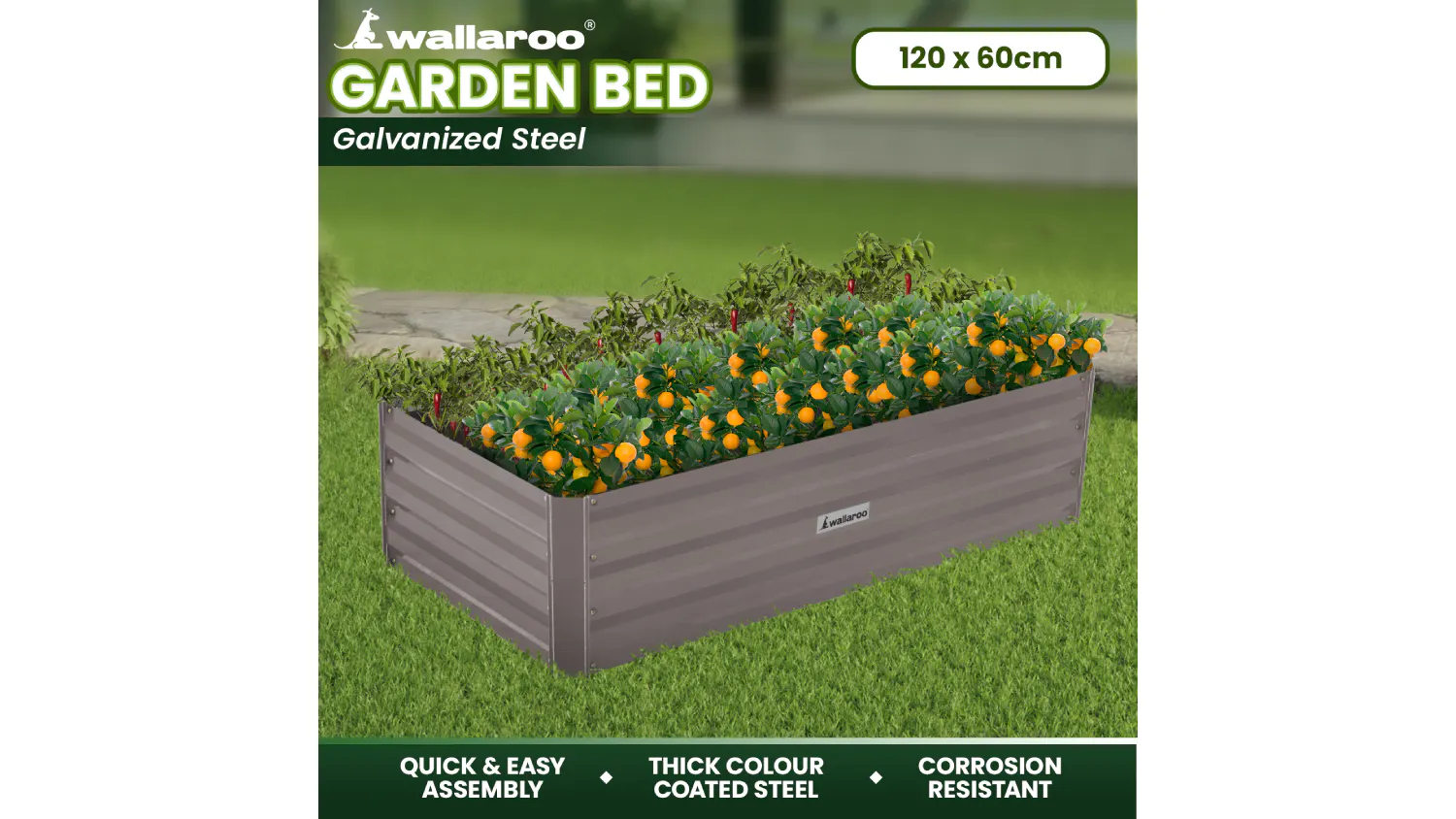 Unleash your green thumb and create a thriving garden with the Wallaroo Galvanised Steel Garden Bed 120 x 60cm. This versatile and stylish garden bed allows you to grow a wide range of plants, from vibrant flowers to delicious vegetables. The anti-rust coating and galvanised steel construction ensure durability, making it a reliable choice for all seasons.