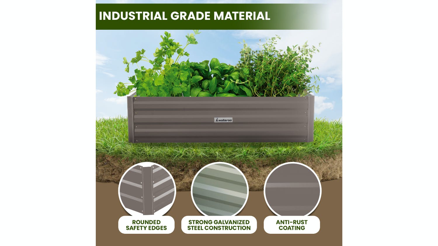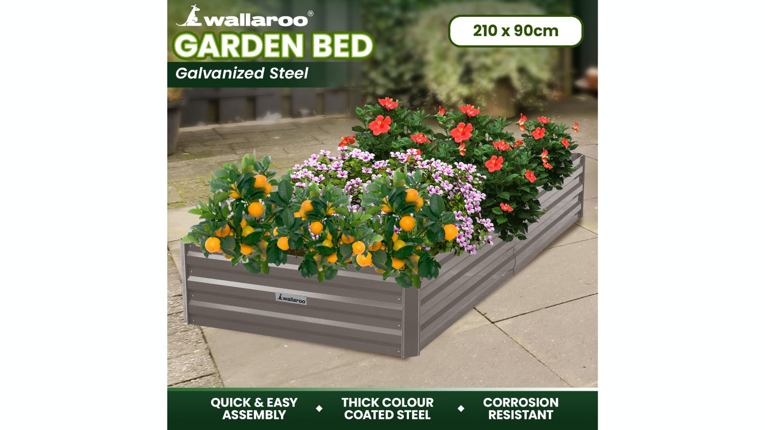 Unleash your green thumb and create a thriving garden with the Wallaroo Galvanised Steel Garden Bed 210 x 90cm. This versatile and stylish garden bed allows you to grow a wide range of plants, from vibrant flowers to delicious vegetables. The anti-rust coating and galvanised steel construction ensure durability, making it a reliable choice for all seasons.