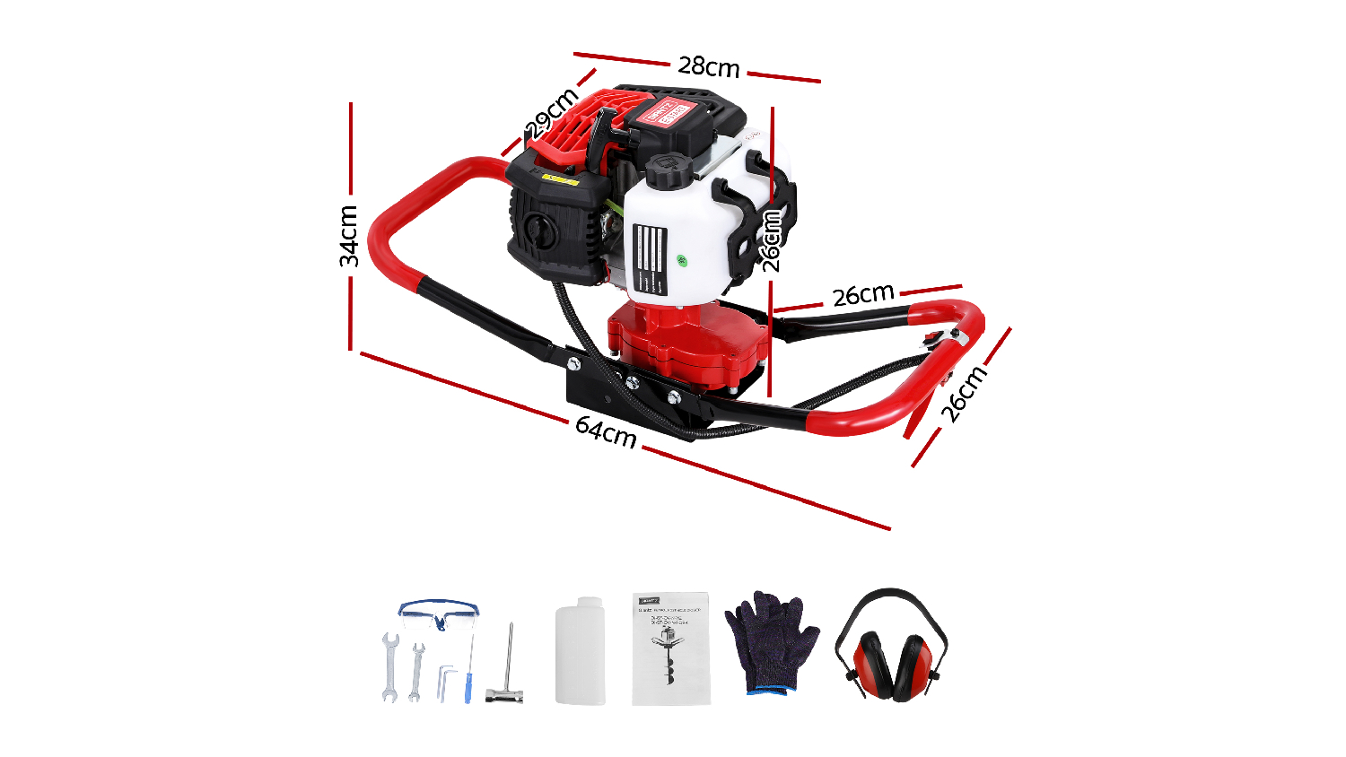 Giantz Post Hole Auger 65cc - Red