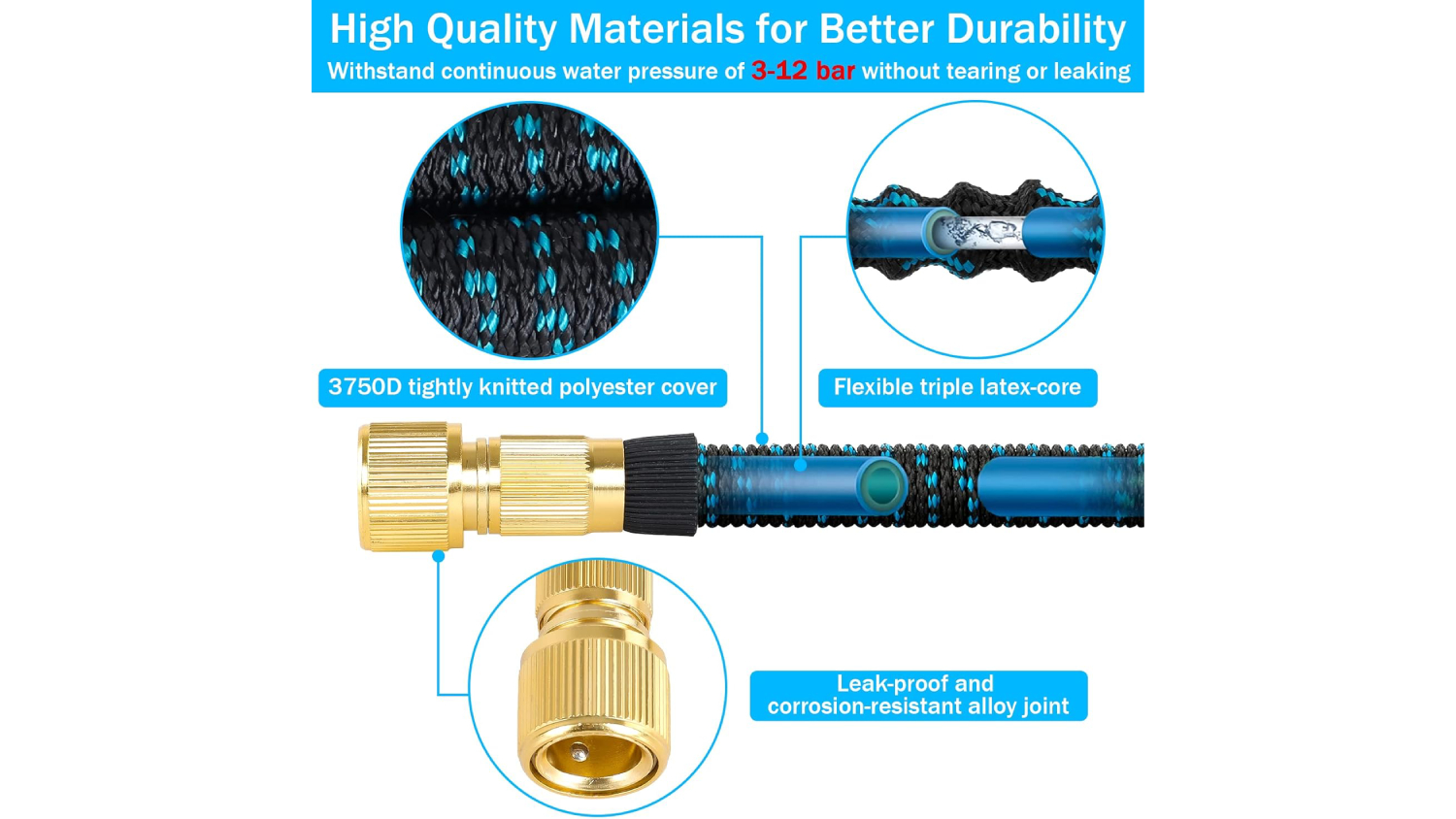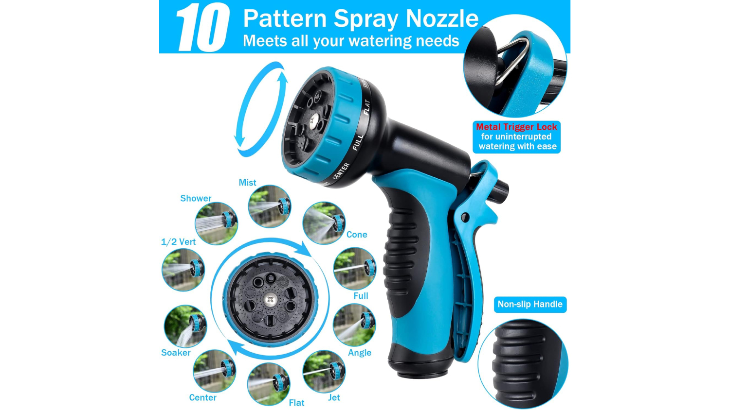 Upgrade your gardening routine with the Kmall Expanding Garden Hose with Spray Gun. This hose automatically expands three times in length, offering great reach, and collapses instantly for simple storage. Built to last, it features a strong triple-layered latex core wrapped in a durable 750 D polyester. The included spray gun offers 10 versatile watering patterns, and the corrosion-resistant alloy adapters ensure a secure, leak-proof fit for reliable use on plants, exteriors, and vehicles.