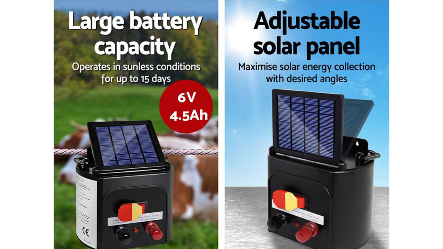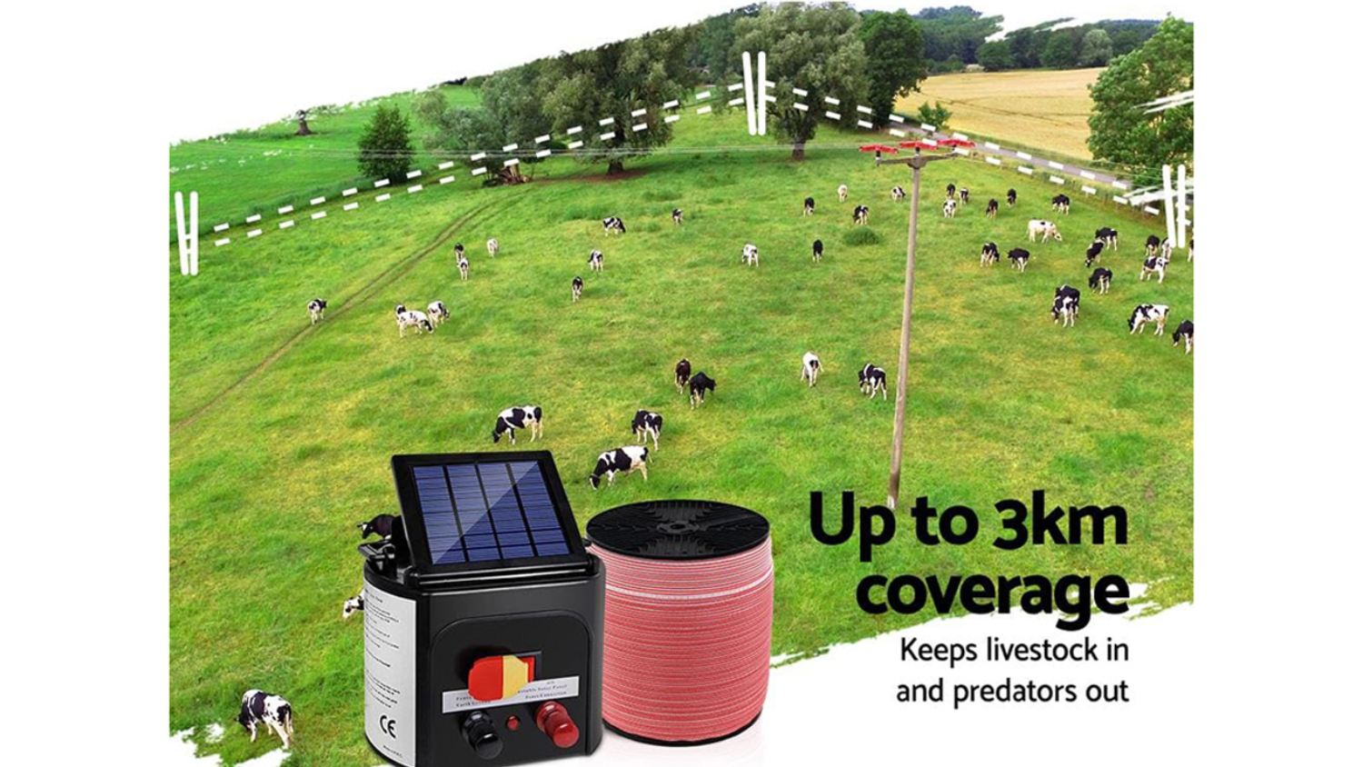 Keep your livestock secure effortlessly with the Giantz Solar-Powered 3km Electric Fence Energiser. This waterproof, CE-approved unit provides a powerful 1 Joule continuous output, featuring an efficient monocrystalline solar panel and built-in overcharge/reverse battery protection. Its lead-acid battery offers up to 20 days of operation without sunlight. The kit even includes highly conductive, UV-stabilised polytape (with five stainless steel strands), connection cables, and four bonus warning stickers.