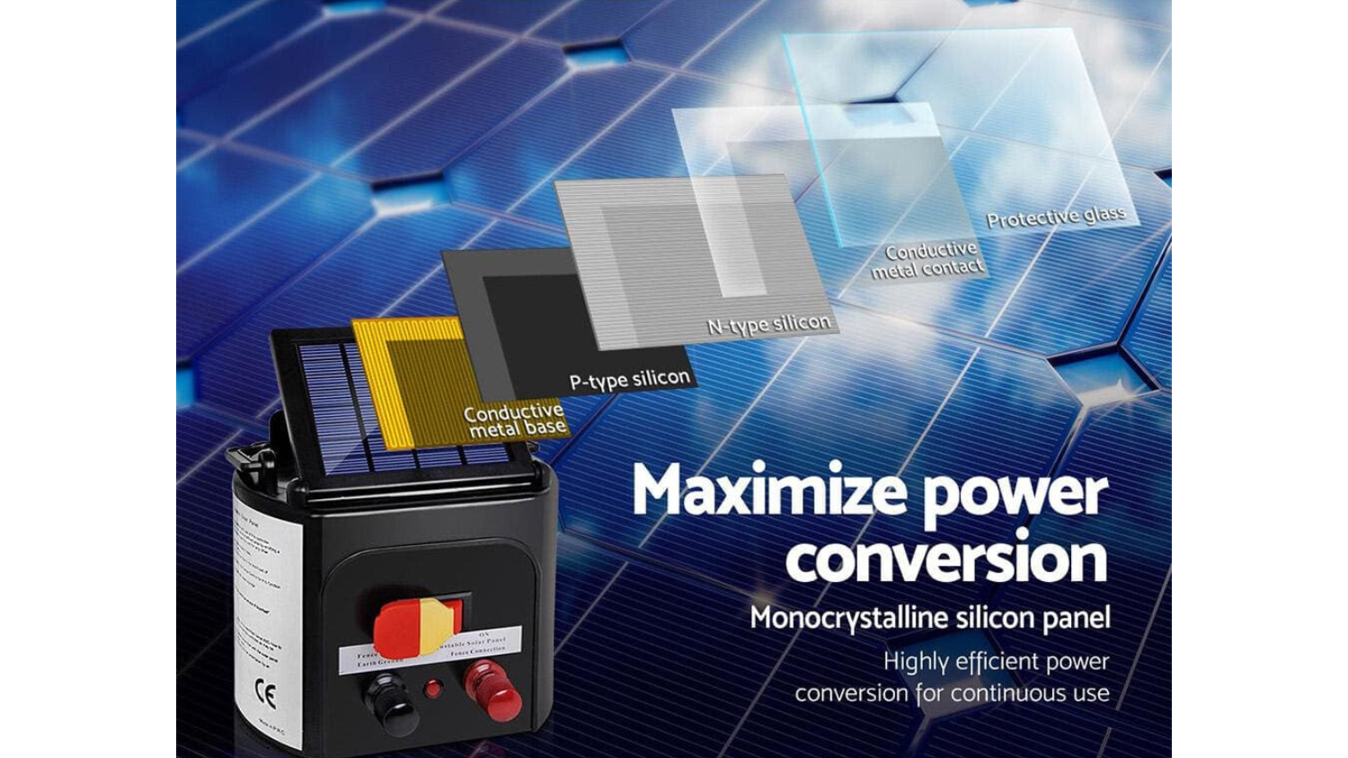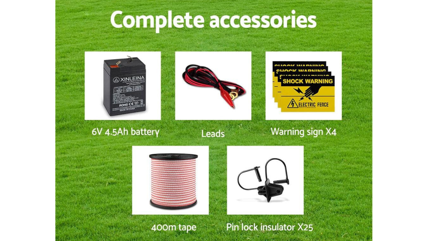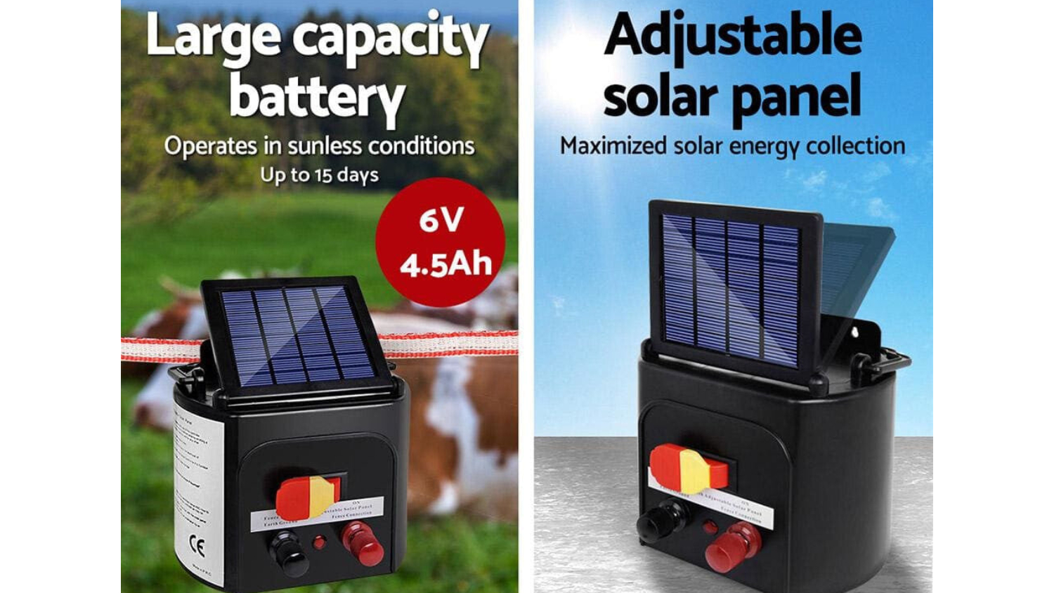 Secure your farm or suburban home with the Giantz Solar-Powered 5km Electric Fence Energiser. This set offers a hassle-free installation process and provides effective protection for your property and livestock. With its powerful 0.15J fence energiser, a monocrystalline silicon solar panel, and long-lasting 6V 4.5Ah lead-sealed battery, this energiser ensures reliable performance. Plus, this fence features protective functions and a waterproof design for added durability.