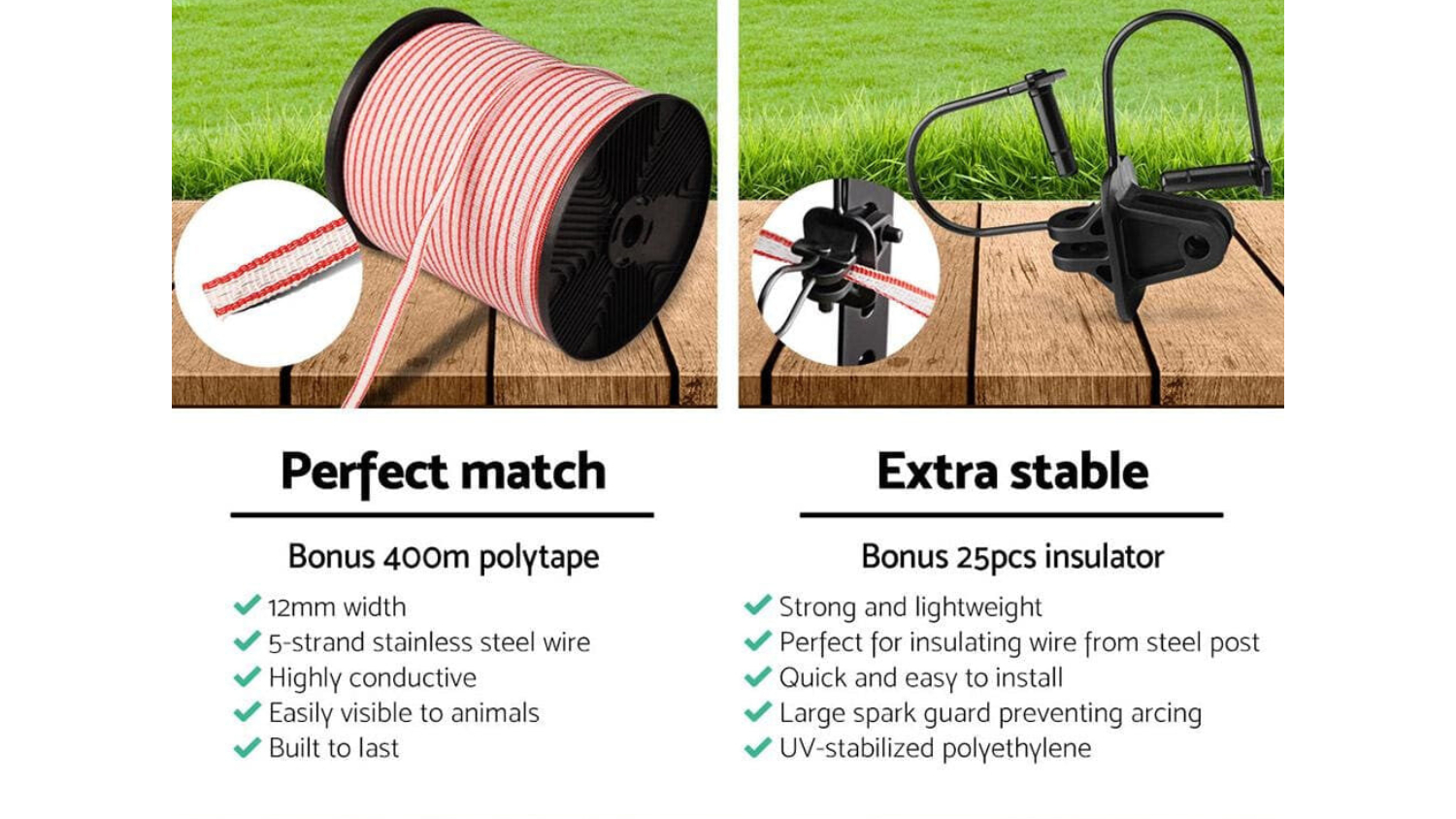Giantz Solar-Powered 5km Electric Fence Energizer - 400m Roll